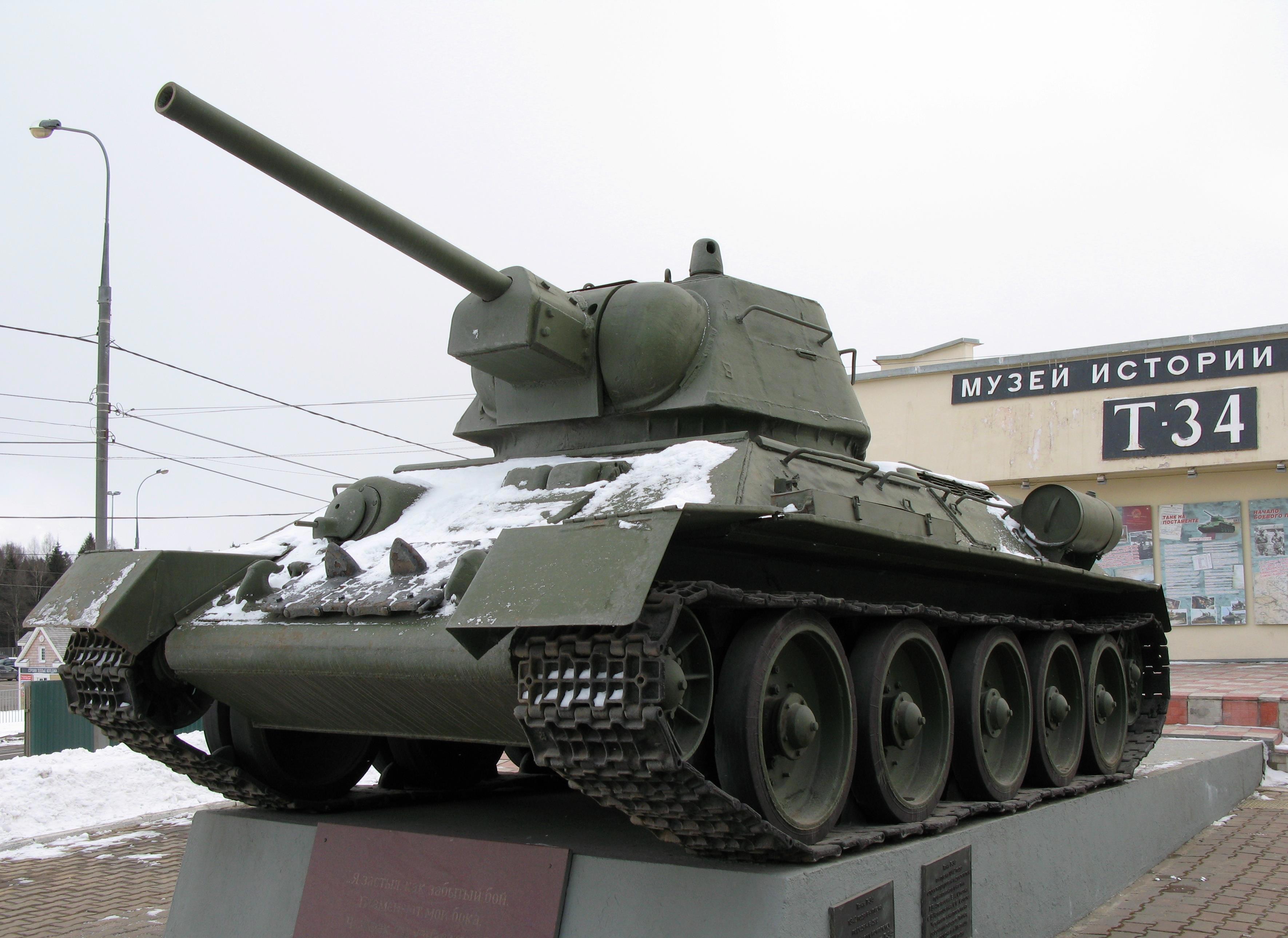 Легендарный средний танк Т-34 с башней "гайкой". Возможно образец 1943 года. Орудие в 76-мм, рациональные углы наклона брони толщиной 45 мм, сравнительно малый вес, простота и надежность конструкции. Узнаваемая всеми машина... Танк находится у Музея истории танка Т-34, в Подмосковье. Фото сделано весной 2016 года. Сам музей небольшой, но уютный. Рассказывается про историю создания "тридцатьчетверки", представлены разные любопытные экспонаты. Во дворе небольшая коллекция боевой техники, есть на что посмотреть.