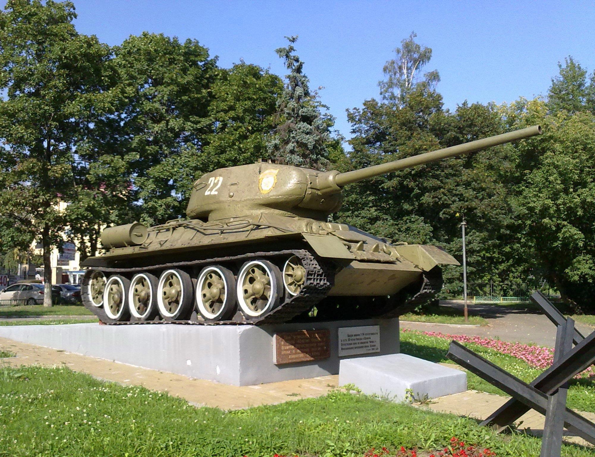 Средний танк Т-34-85. Модификация "тридцатьчетверки" от 1944 года. Пушка 85-мм, другая башня, улучшенные приборы управления. Фотография сделана в районе Щукино, города Москвы.