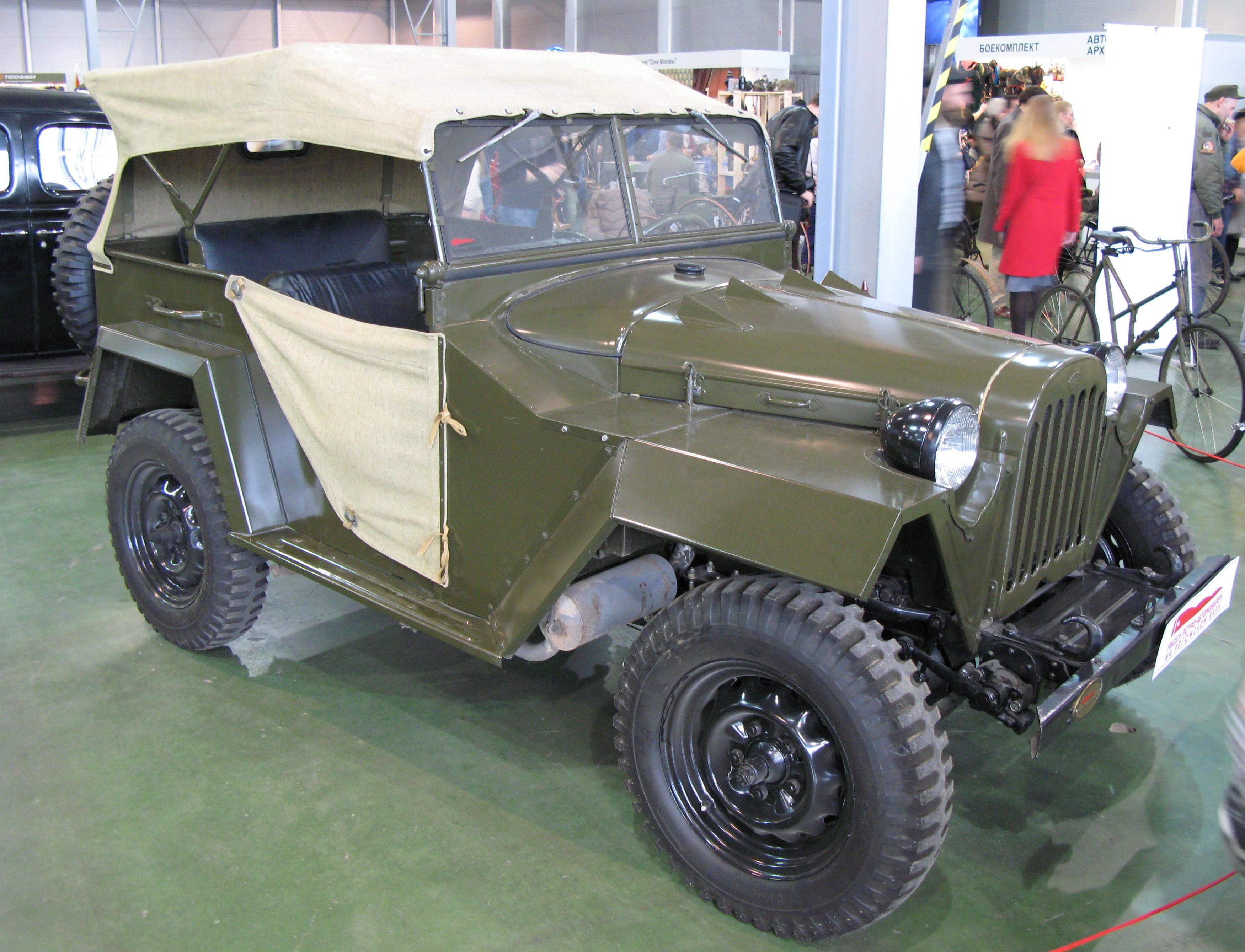 Советский военный полноприводный легковой автомобиль ГАЗ-67. Машина-трудяга, использовалась как штабной автомобиль, машина связи, для буксировки техники и перевозки раненых.