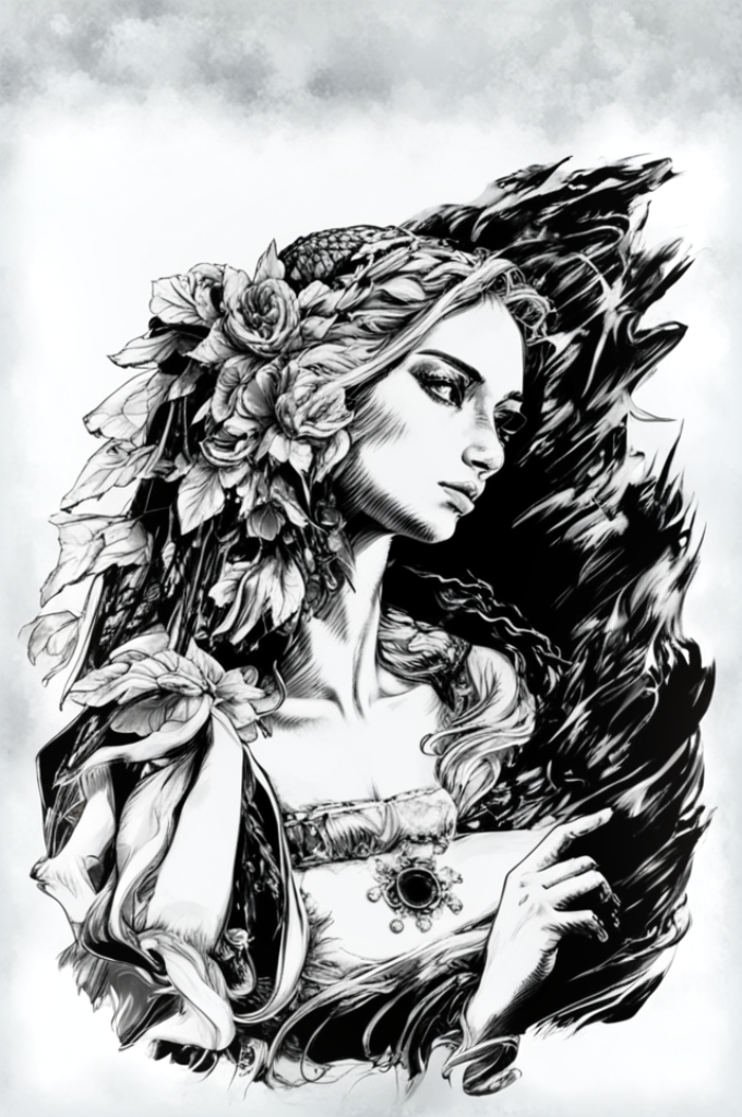 Но знаете, что интересно? Третья картинка отображает момент, когда одна из героинь заглядывает в адское зеркало. Наряд там поменялся, цветочки в волосах и слегка макияж.
