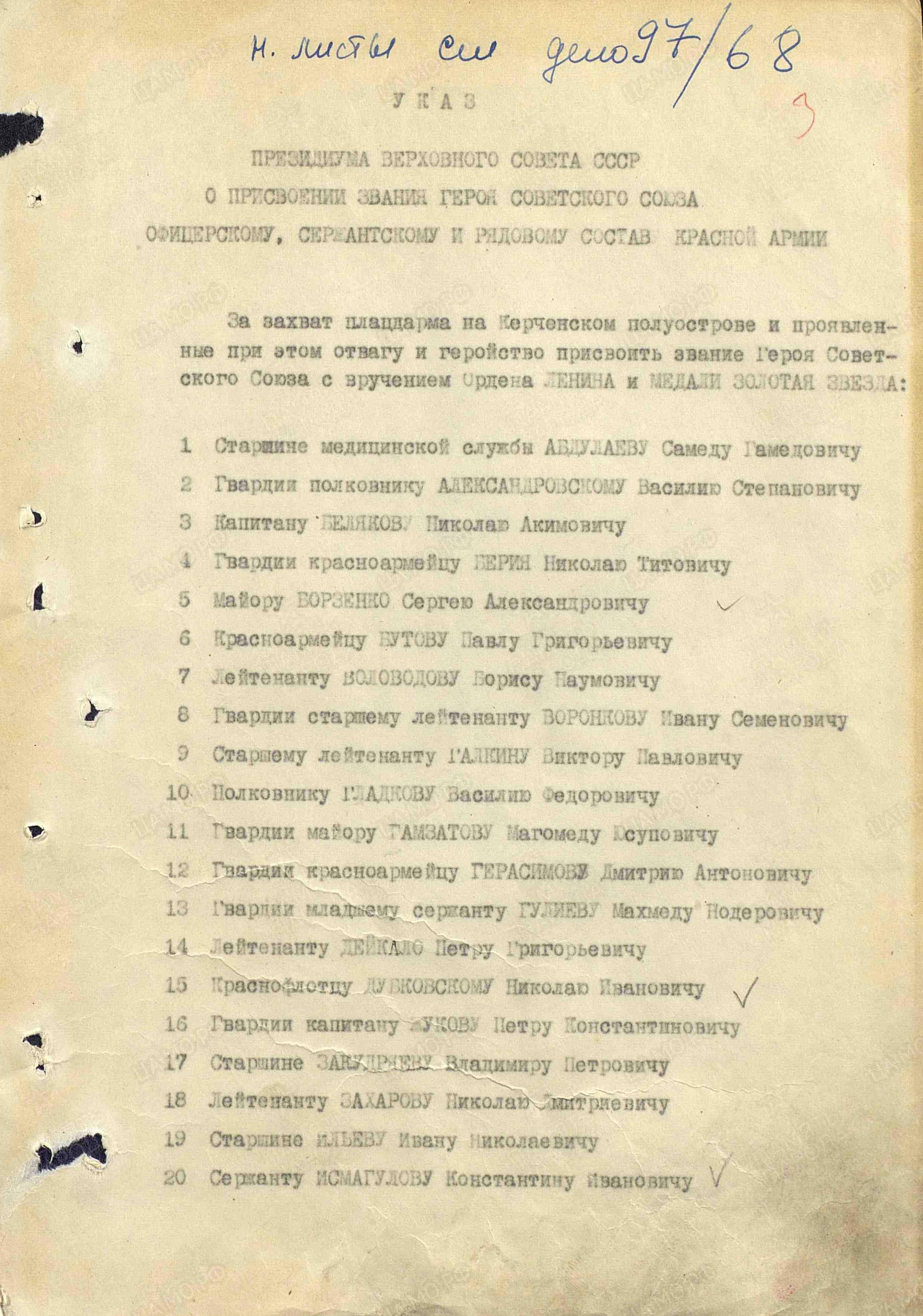 Награждены майор и полковник одним указом от 17.11.1943
