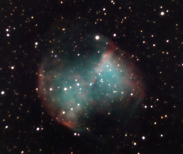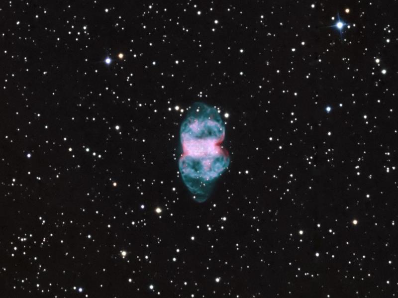 А вот знаменитая и довольно яркая туманность М27 "Гантель" в неприметном созвездии Лисички: