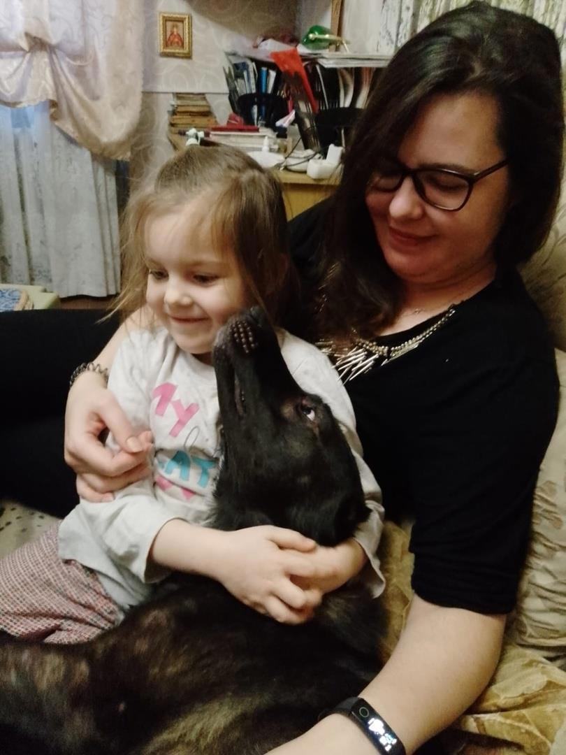 (на фото внучка Ульяша, невестка Юля и наша расчудесная собака МилАха)