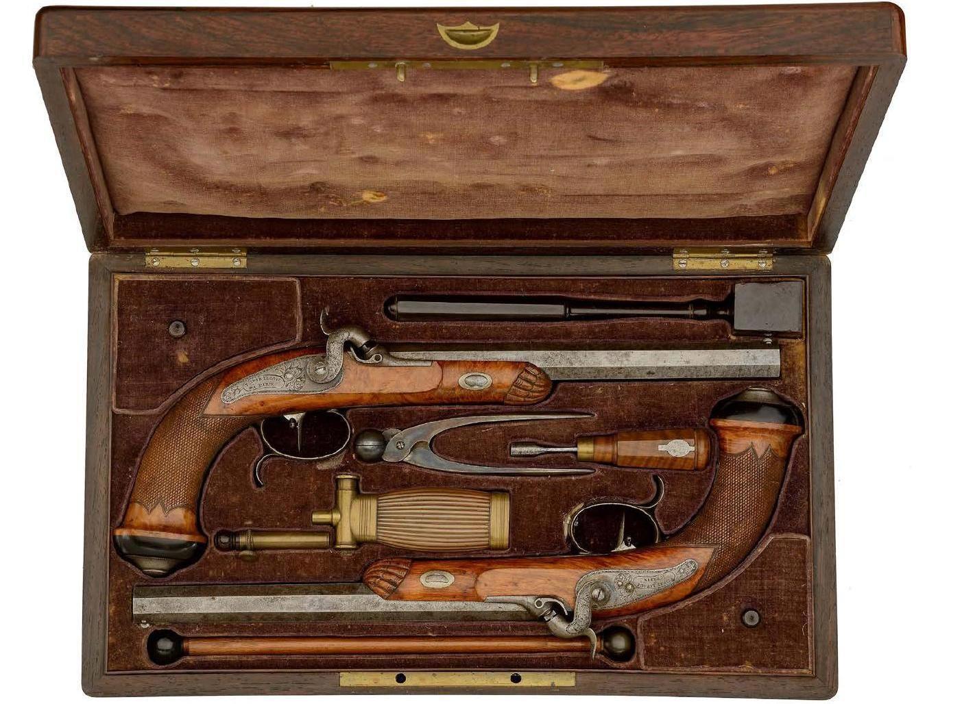 К началу XIX в. чаще упоминаются также посеребренные пистолеты и ружья, оружие с рукоятками, декорированными золотом, серебром и перламутром.