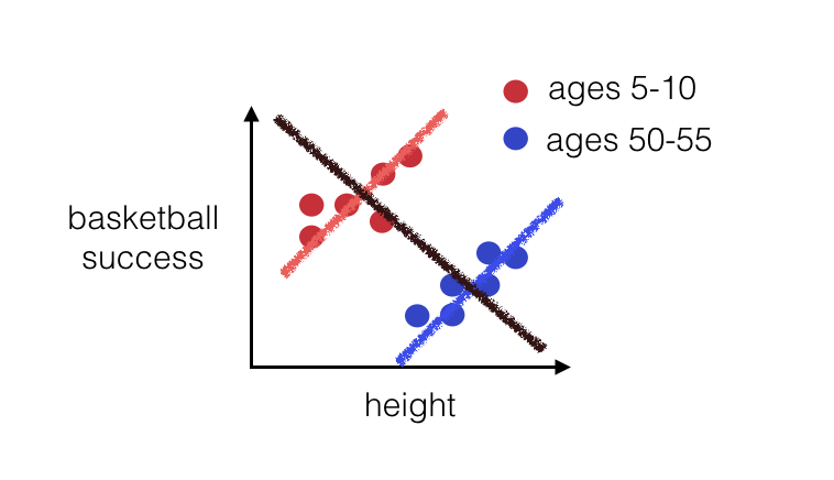 - про то, что нельзя просто брать данные и строить графики, не понимая что это за данные, одинаковые тенденции в нескольких группах данных при их объединении могут исчезать или меняться на противоположные.