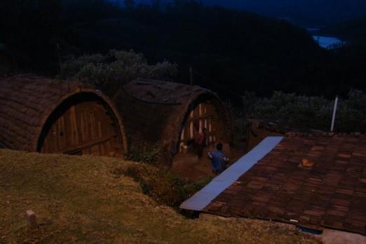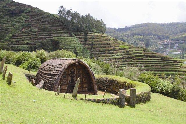 На вершине расположены хижины Тода. Эти жилища напоминают разрезанные пополам огромные бочки, срезом поставленные на землю. Окон в хижине нет, и только в передней стенке прорезан вход, размером не более одного метра на метр. Войти в хижину нельзя. В нее вползают на коленях.