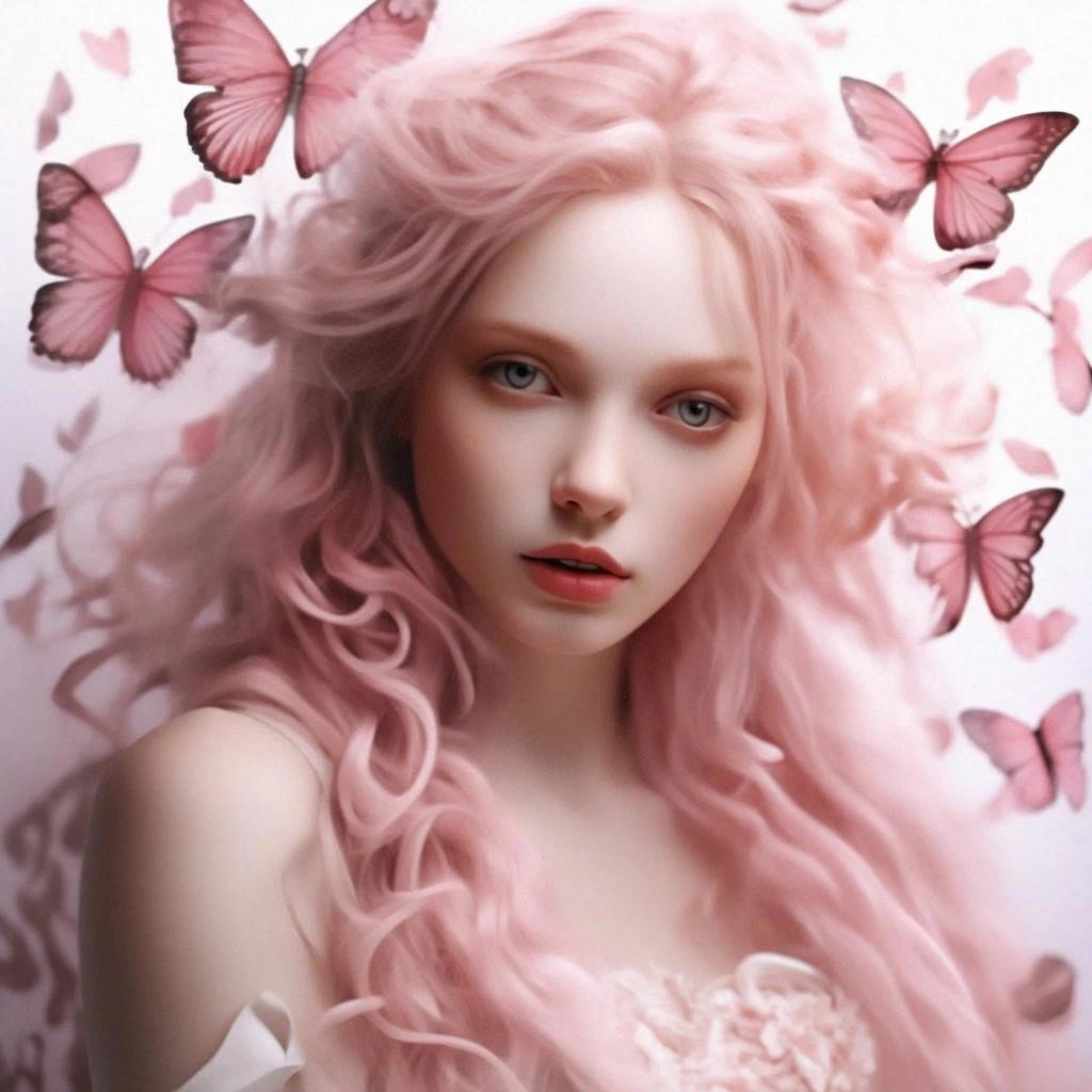 Вот такой меня увидел искусственный интеллект. Бабочки есть, лоб высокий, цвет глаз похож, цвет волос тоже (я сейчас действительно с розовыми волосами). Остальное вольная интерпретация нейросети. Что-то общее есть...