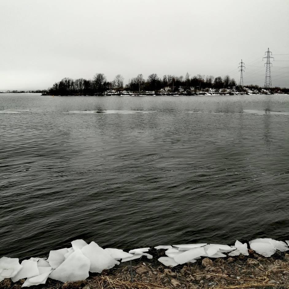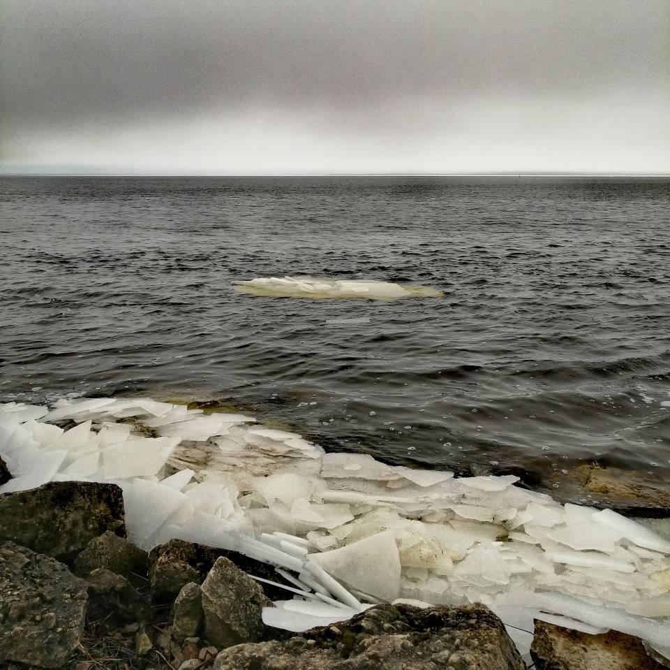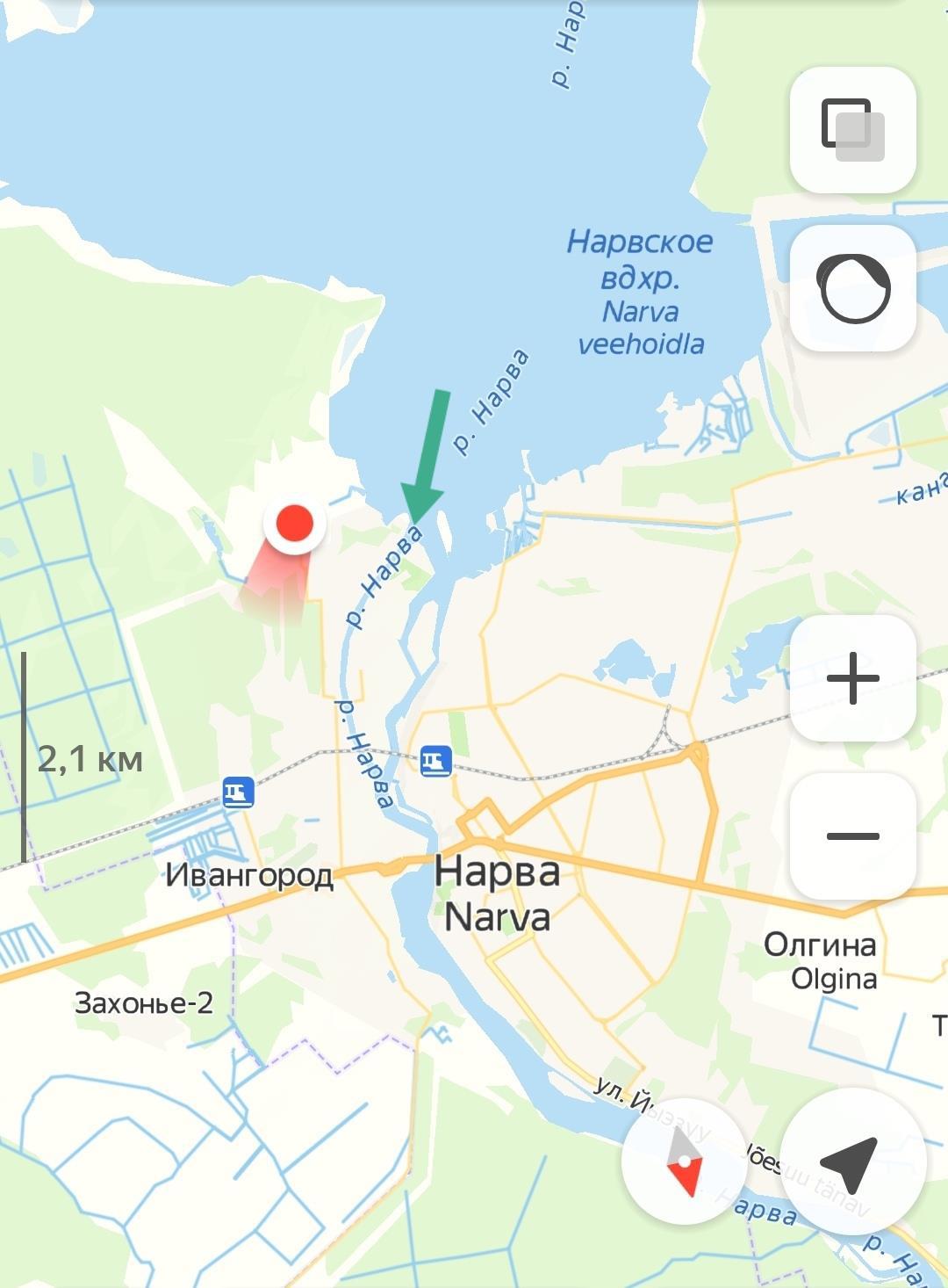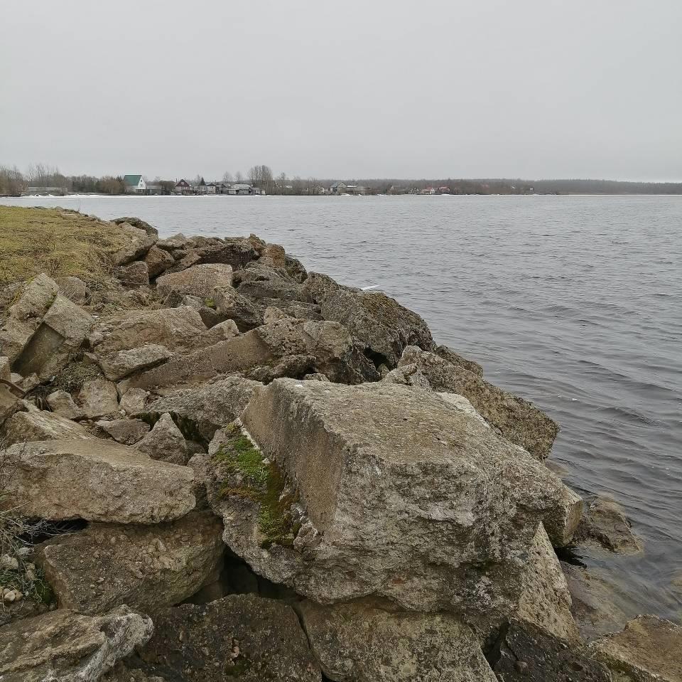 Ну, и готова показать это самое место. На краю. Остров с деревьями на той стороне - это Эстония, Ида-Вирумаа.