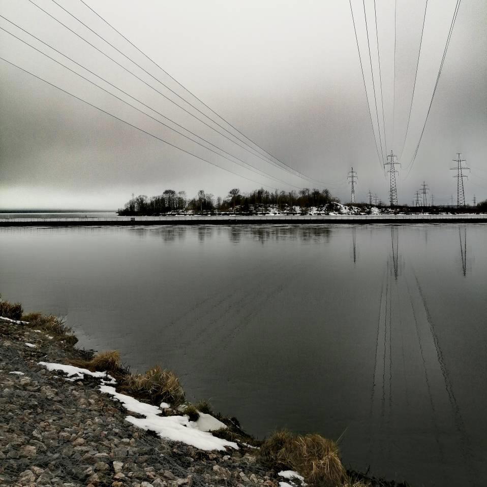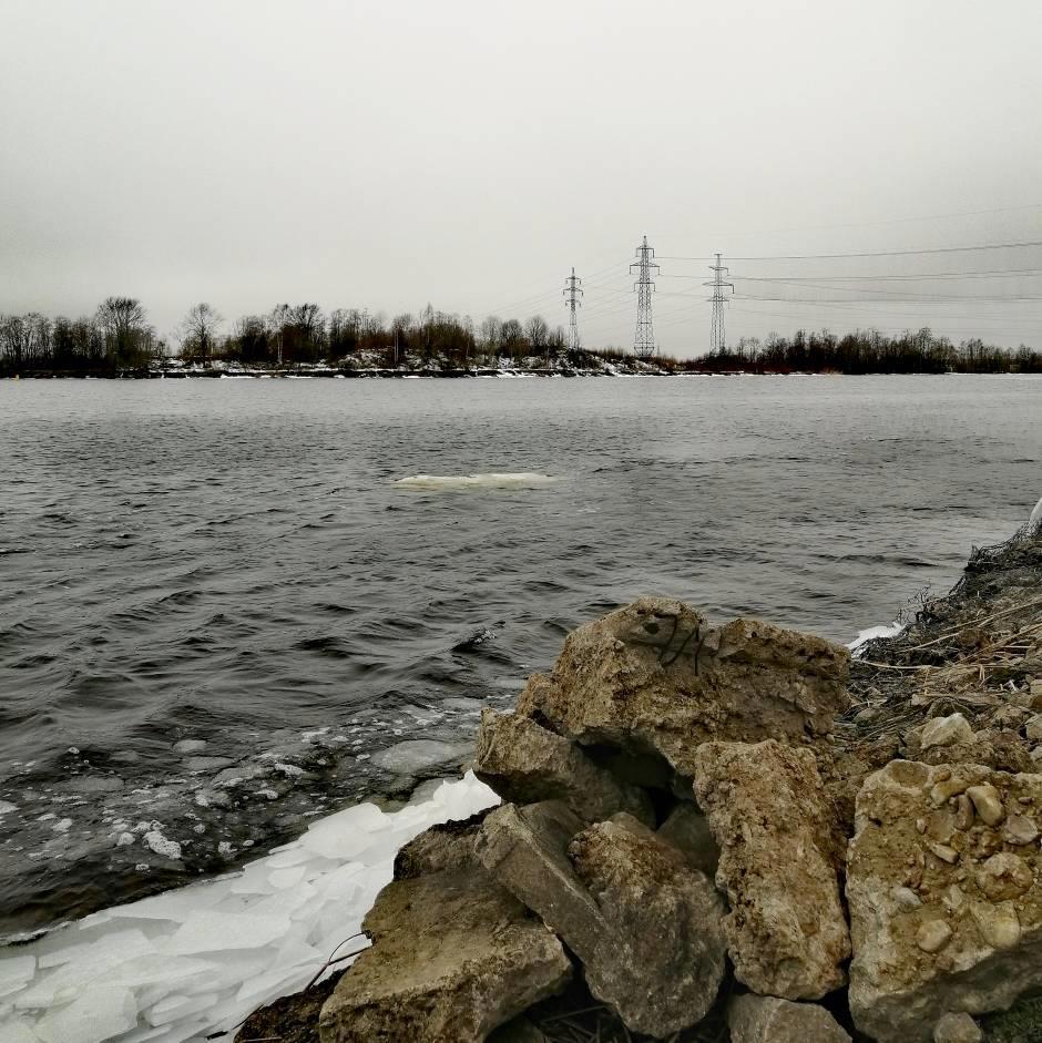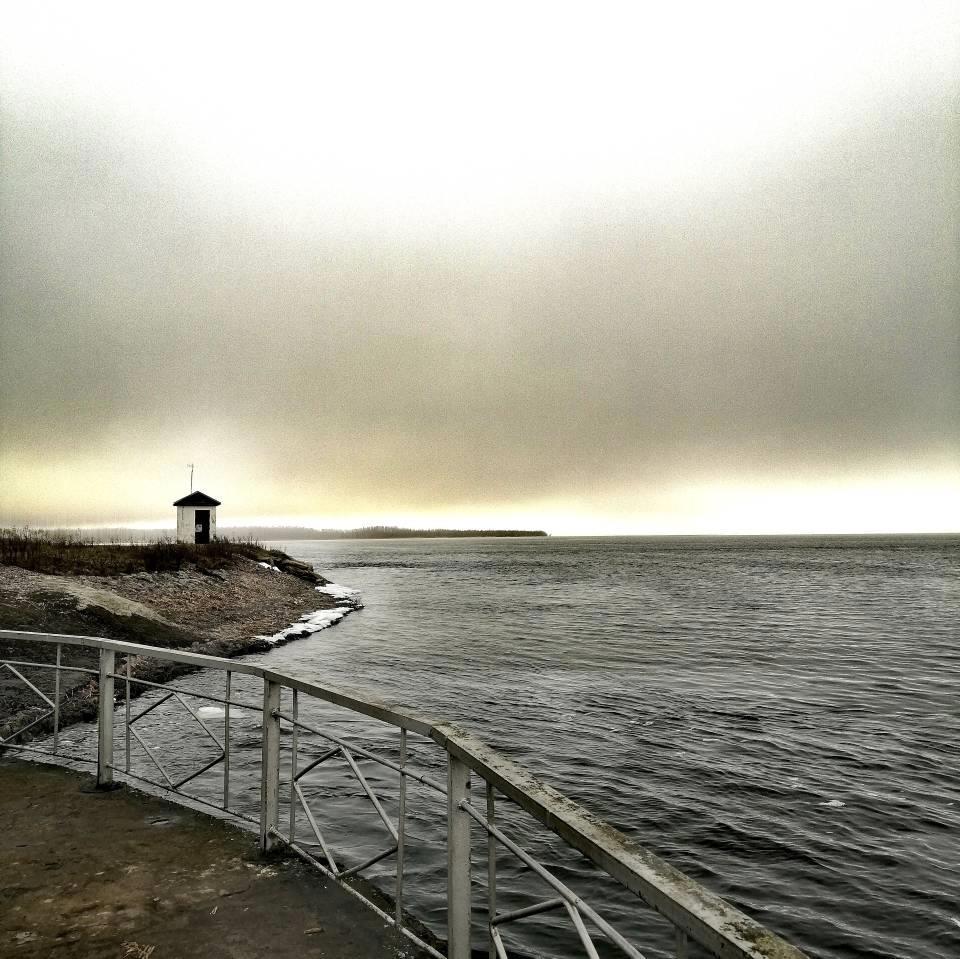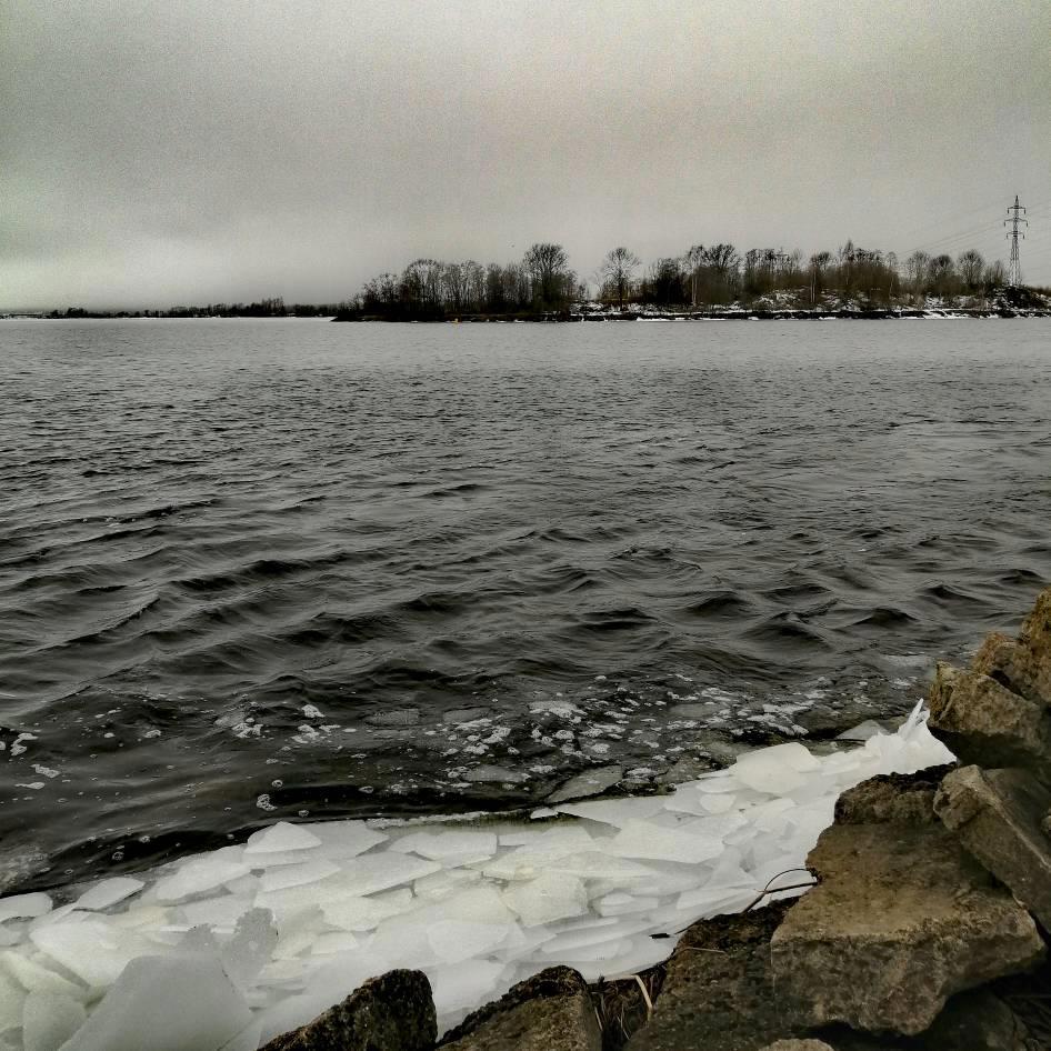 Ну, и готова показать это самое место. На краю. Остров с деревьями на той стороне - это Эстония, Ида-Вирумаа.