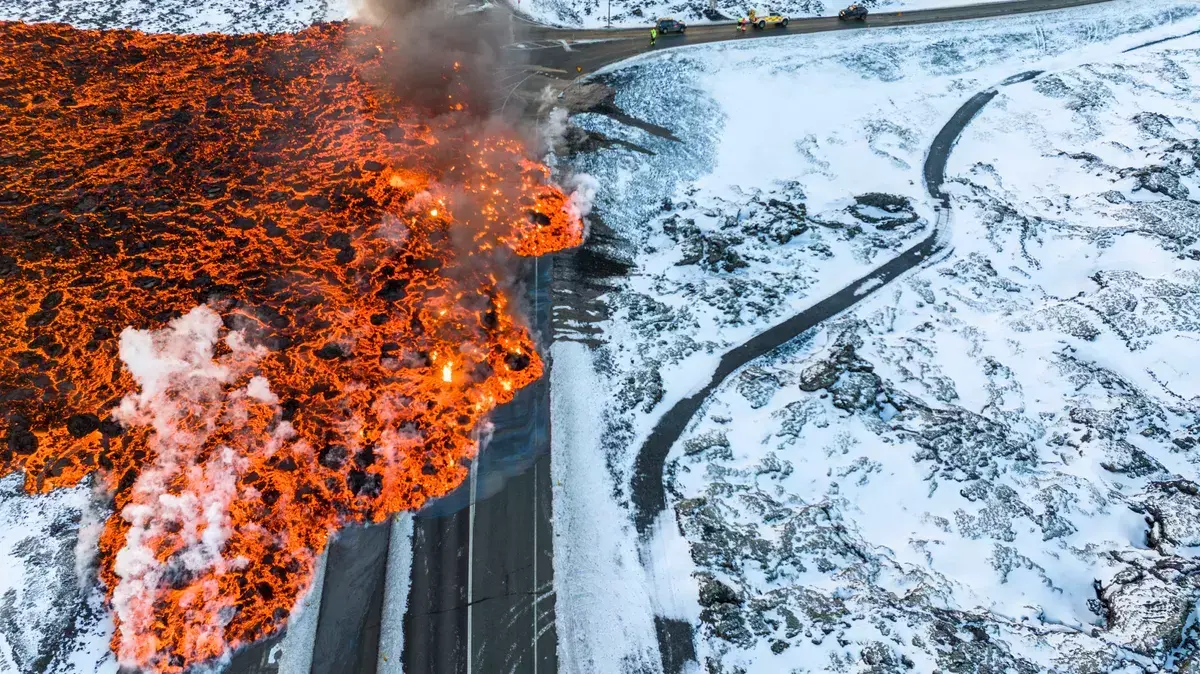 Если бы... В реальности на Рейкьянесе в 2021 году начался новый цикл вулканической активности. Первое после 1240 года извержение на полуострове длилось полгода. После этого было ещё пять, причем с декабря 2023 года это произошло уже три раза - регулярность раз в месяц.