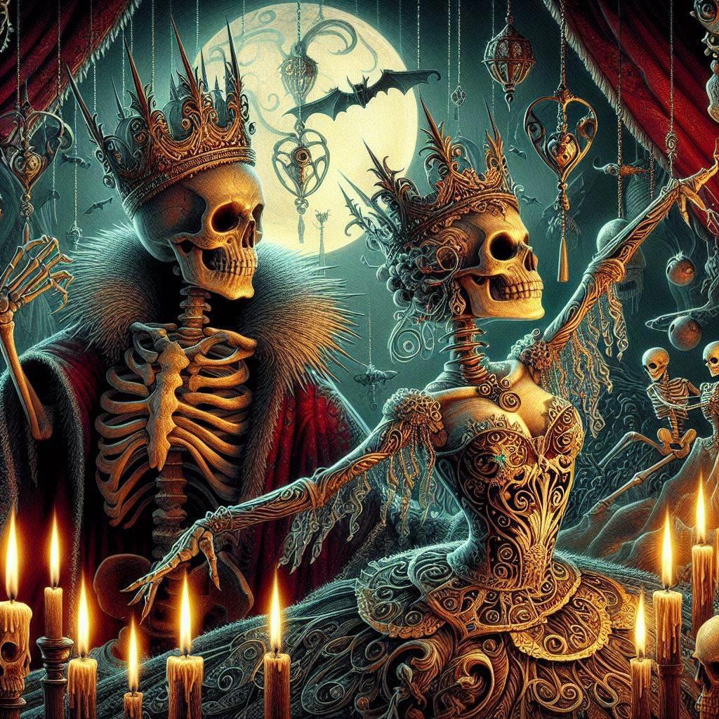 Тут я сама пи-пи-пищу от восторга и царственности этого арта. Король скелетов и его Dancing Queen.