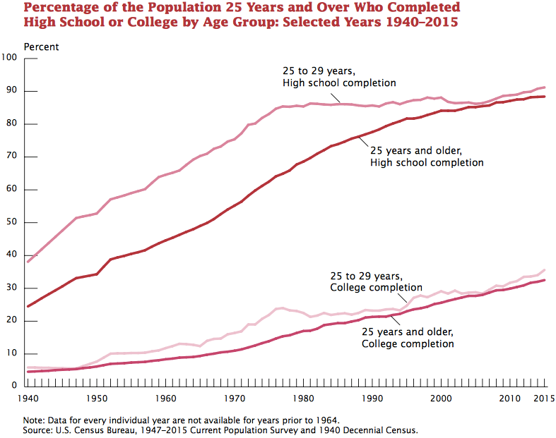 Вот только американские диточки идти в армию за деньгами на вышку желанием не горят. Зачем если можно взять кредит который потом простят добрые демократы? Или еще лучше — жить на велфере, пушить кокс и ругать капитализм. Ну и наконец статистика говорит нам что людей с вышкой, не смотря на такие дорогие университеты, в Штатах почему-то все больше: