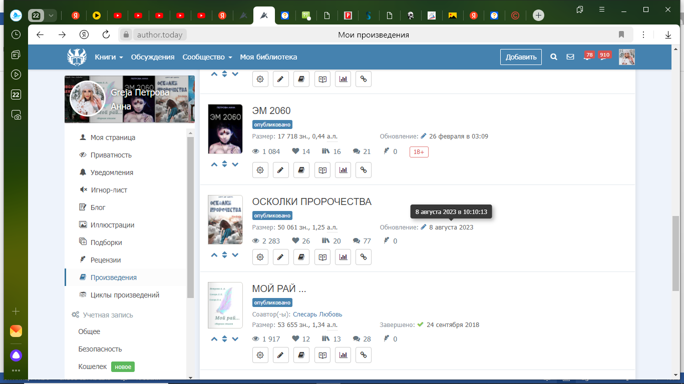 Кстати, у меня у одной что-то не то с датами обновления публикаций на сайте? Вчера только загружала новую главу в сборник рассказов "Осколки пророчества"... а сайт думает что это было в августе 23го)