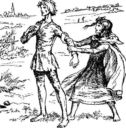 …Окованная медью дверь горела от заката. Никого не было видно, и Джек стал было уже спускаться, когда дверь распахнулась. В нее вошел сэр Гью Друриком, пропуская вперед маленькую, босую и испуганную Джоанну.