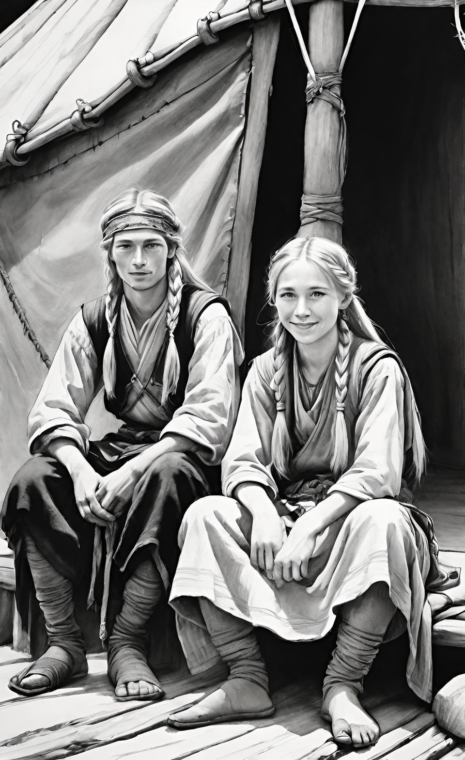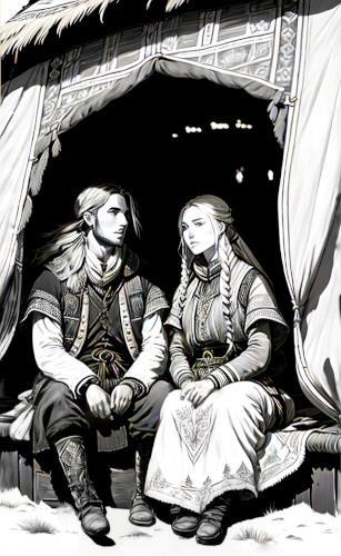 Пока не выбрала, что лучше. Вот половецкий князь Арпад с сестрой-близнецом Алетейей.