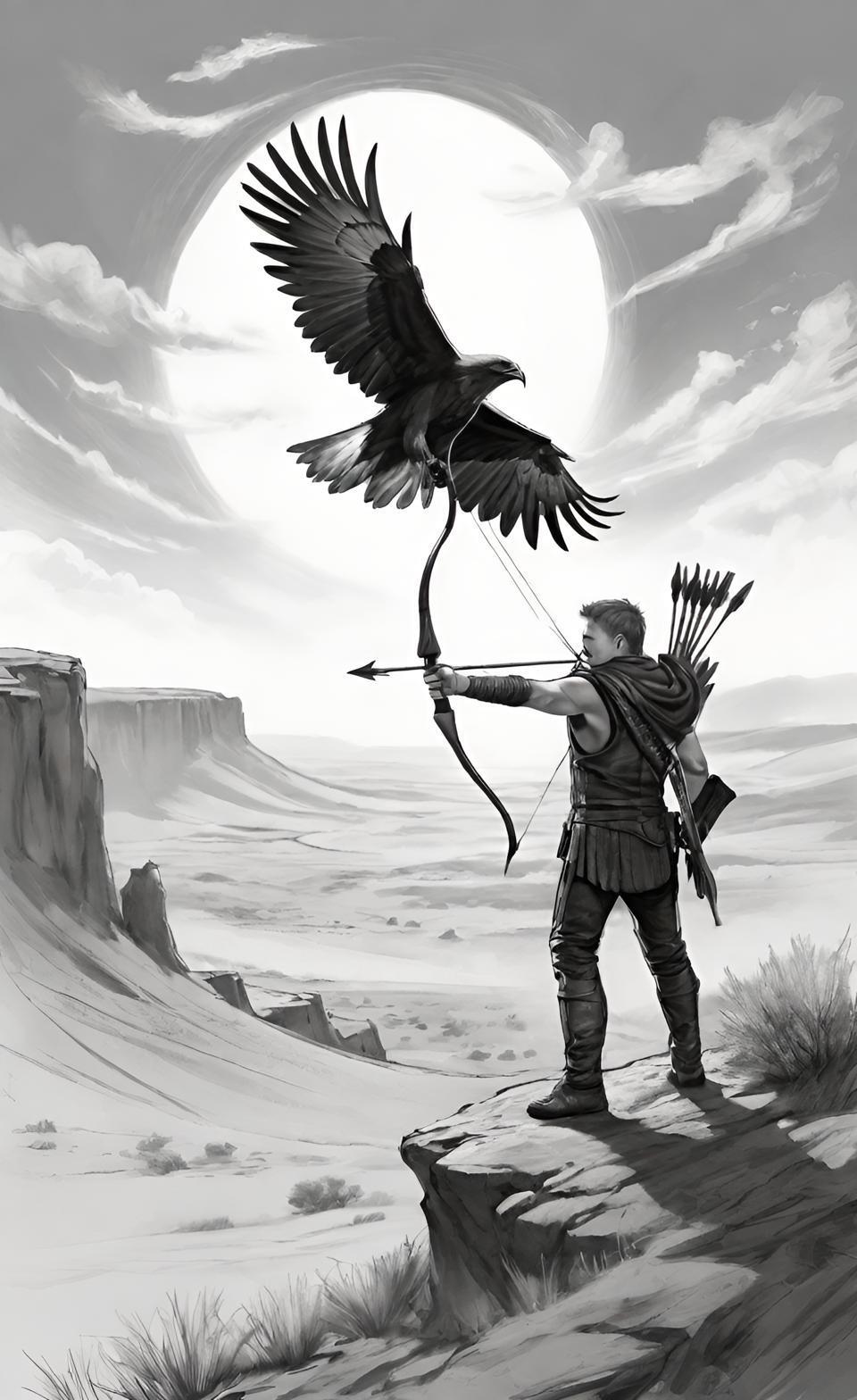 А тут я так и не поняла, где у него колчан. Попытки врисовать колчан принудительно ни к чему не привели.