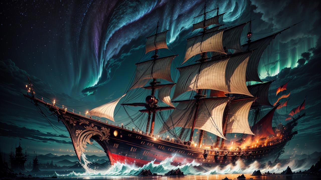 А это средневековый поморский коч. Все как полагается - семь мачт, паруса 19 века, какая-то херня на носу, чтобы все спрашивали, что там за херня на носу.