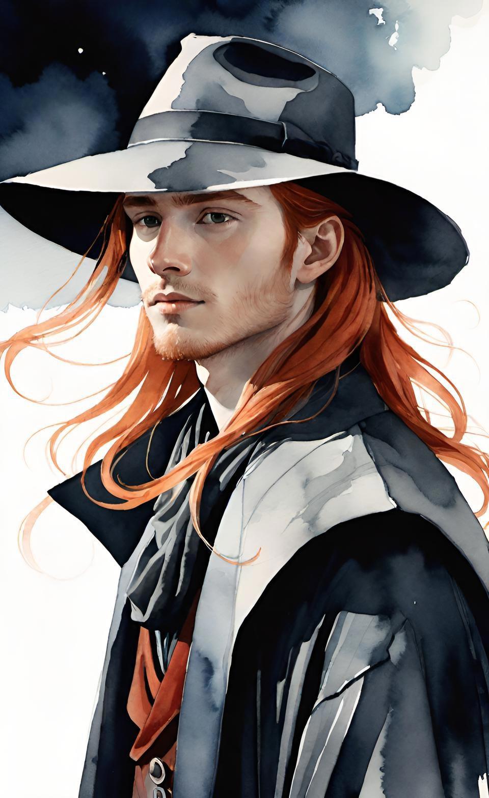 Но вдруг с улочки слева, которой ещё два шага назад не было видно, врывается порыв ветра — широкополая шляпа слетает с головы, и волна рыжих волос скользит следом, словно пытаясь её удержать — яркий всполох янтарного солнца на фоне общей серости. Мужчина ловким движением ловит шляпу и надевает её обратно... туман сгущается, и стороннему наблюдателю кажется, что всполох его волос был всего лишь миражом, как неверное солнце, скользнувшее сквозь дождевые облака и снова скрывшееся...