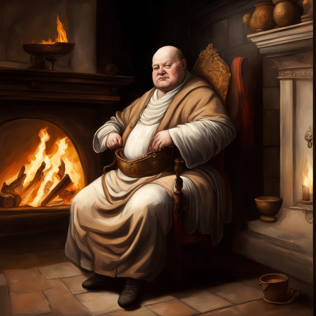 хорошо, что сейчас есть нейросети, которые позволяют создавать уникальные арты. Хотя не всегда можешь добиться того, что хочешь. Это брат Феований, допрашивающий нашу попаданку.