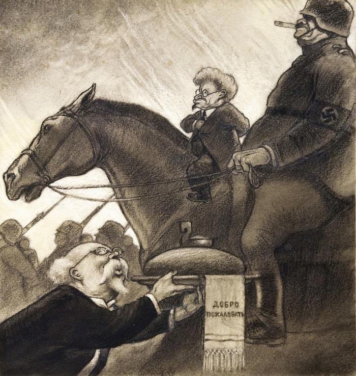 Тогда Кукрыниксы - напомню, что это художники КУприянов, КРЫлов и НИКолай Соколов - перевернули верх дном всю редакцию "Крокодила", но все-таки нашли оригинал. Как выяснилось, карикатура не пошла в печать, и все эти годы так и валялась в какой-то из бесчисленных папок с рисунками "крокодильцев".