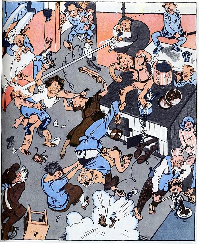 Речь идет о невероятно популярной карикатуре 1927 года под длинным названием «Будни общежития. Маленькие разногласия на общей кухне по поводу исчезновения одной иголки для прочистки примуса».
