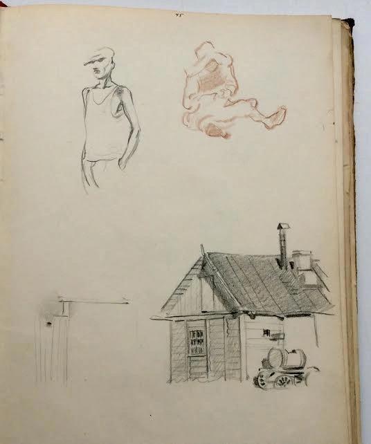 Позже он много раз говорил, что его спасло только то, что его не лишили возможности рисовать - потому что не рисовать он не мог, это было необходимым условием существования. Вот его лагерные наброски.