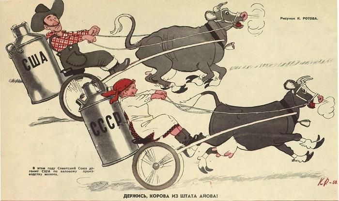 Его работы появляются практически в каждом номере "Крокодила", при этом художник создал немало карикатур, ставших маркерами хрущевских времен - в частности, знаменитую "корову из штата Айова" - догоним и перегоним Америку, ага.