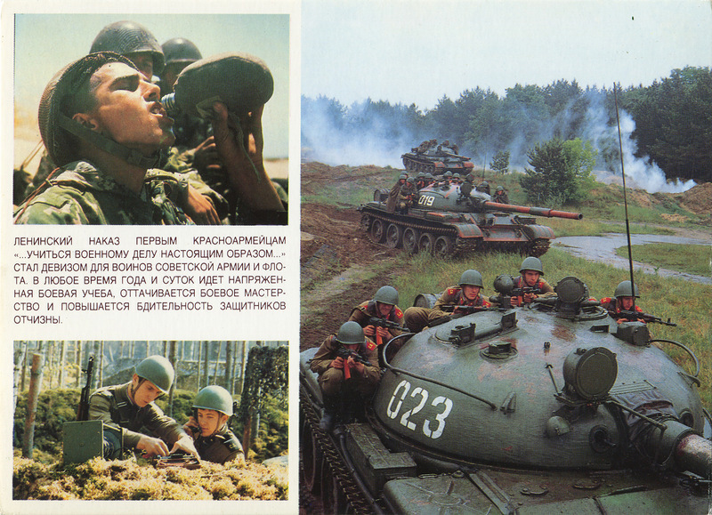 На фотографии: открытка из набора "Армия, рожденная Октябрем". Внизу слева советские связисты.