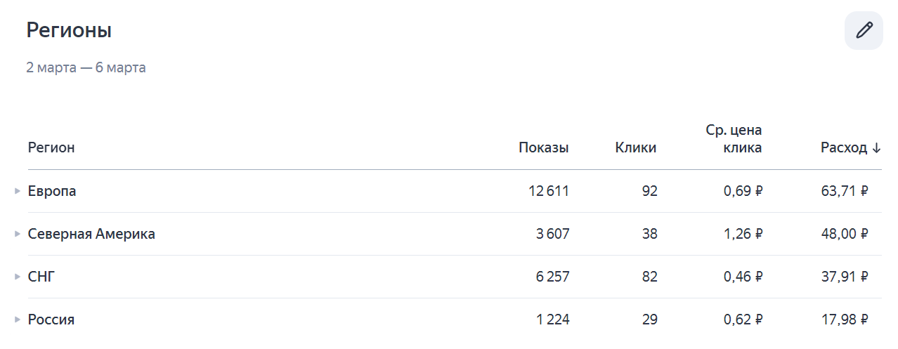 То есть наибольший интерес книга вызывает в Европе, на втором месте СНГ с самым дешёвым кликом, на третьем - Северная Америка и, наконец - Россия.