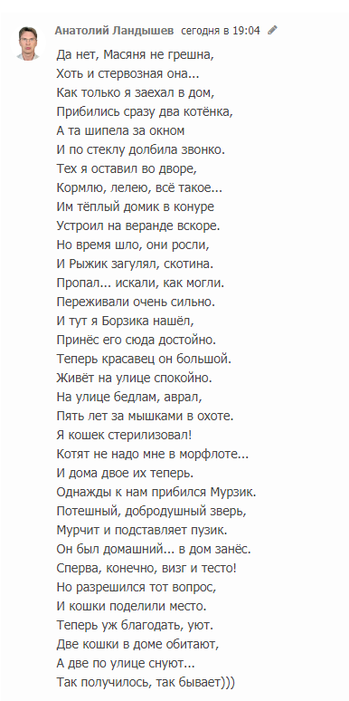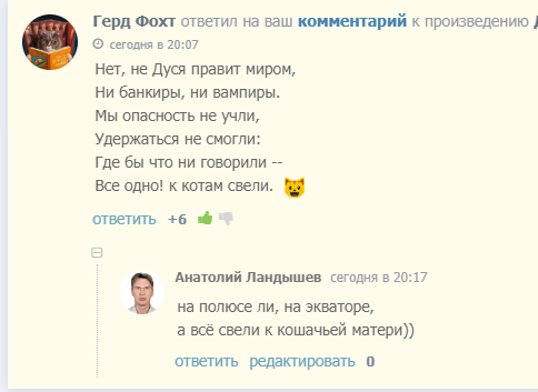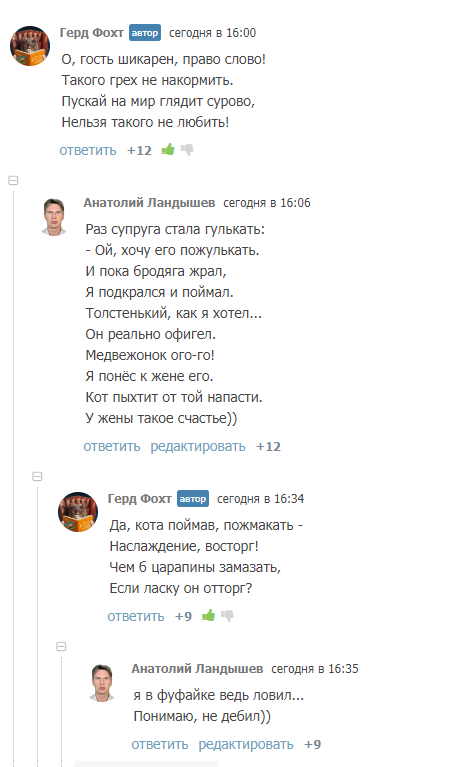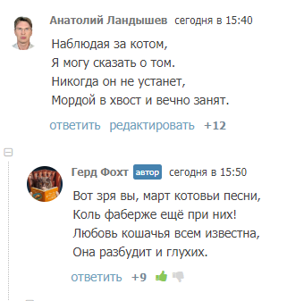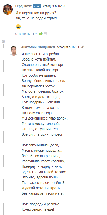 Кошачий баттл в стихах. Анатолий Ландышев + Герд Фохт