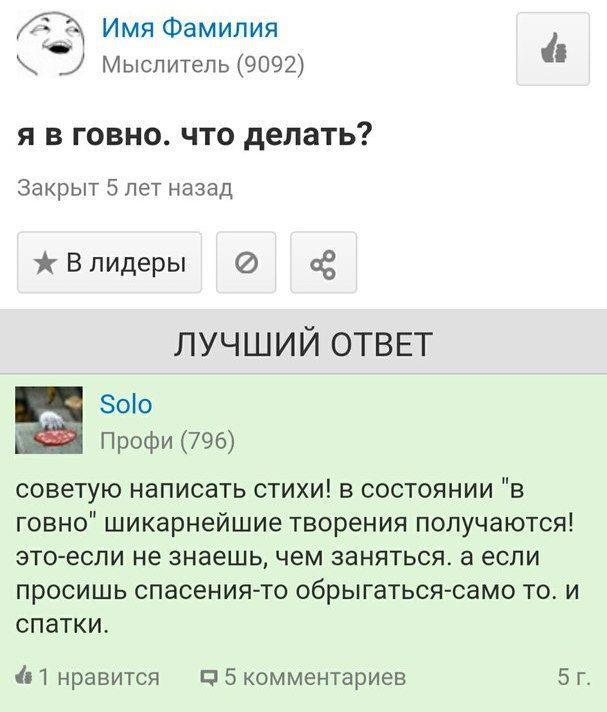 Автор: Вячеслав АнуфриевКак лучше всего отвечать на глупые вопросы? Многие считают, что лучше отшутиться, чем долго и нудно объяснять. А на некоторые даже и шутить нечего. Вот примеры: