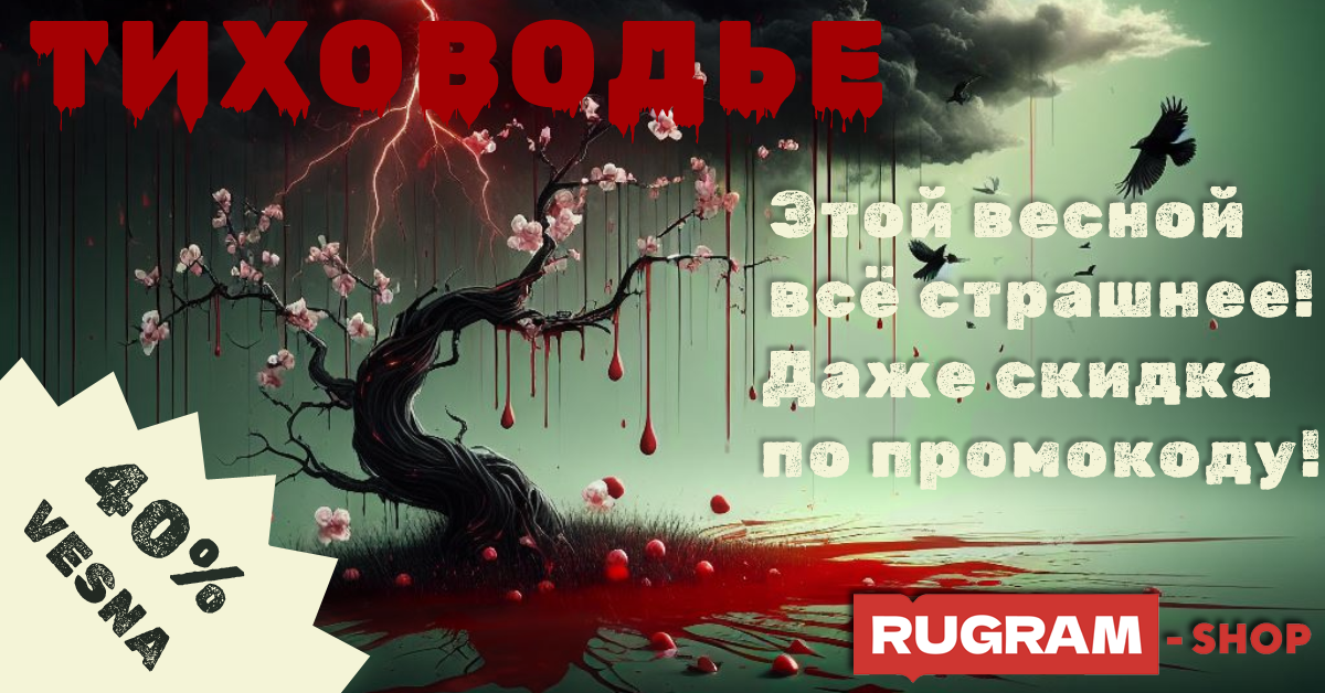 А вот и новый промокод от Rugram-Shop! Скидка 40% на мой дебютный роман Тиховодье только для самых смелых. Для тех, кто не боится заглянуть в глубины бессознательного и пережить все ужасы, которые там скрываются. Заходите по ссылке , добавляйте в корзину и вводите промокод VESNA.