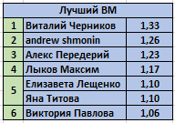 ![]() | Первое место в напряженной борьбе завоевал Виталий Черников со своим рассказом «Укус Уробороса», набрав 305,46 баллов. От всей души поздравляем победителя! |