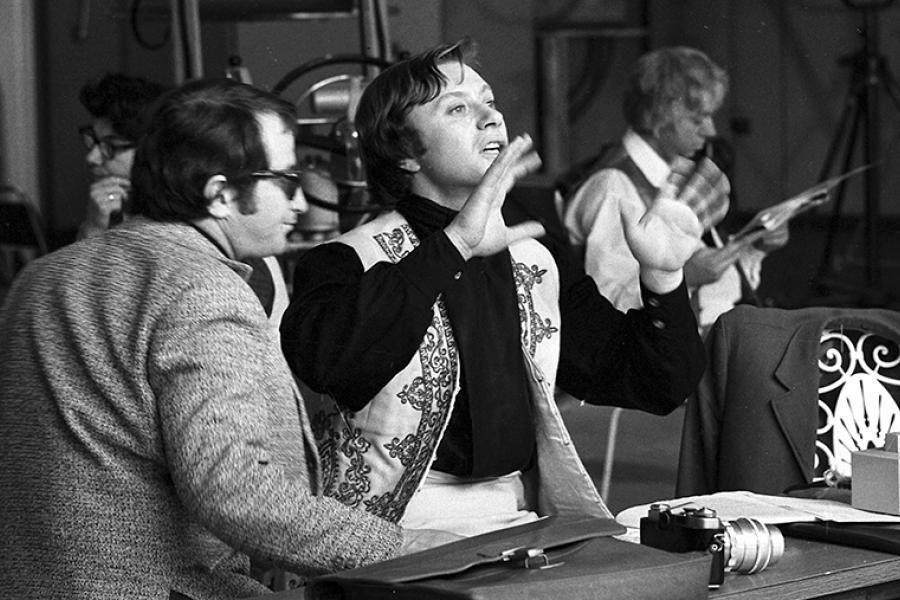 Во время репетиции телеспектакля «Безумный день, или Женитьба Фигаро» в студии «Останкино»
