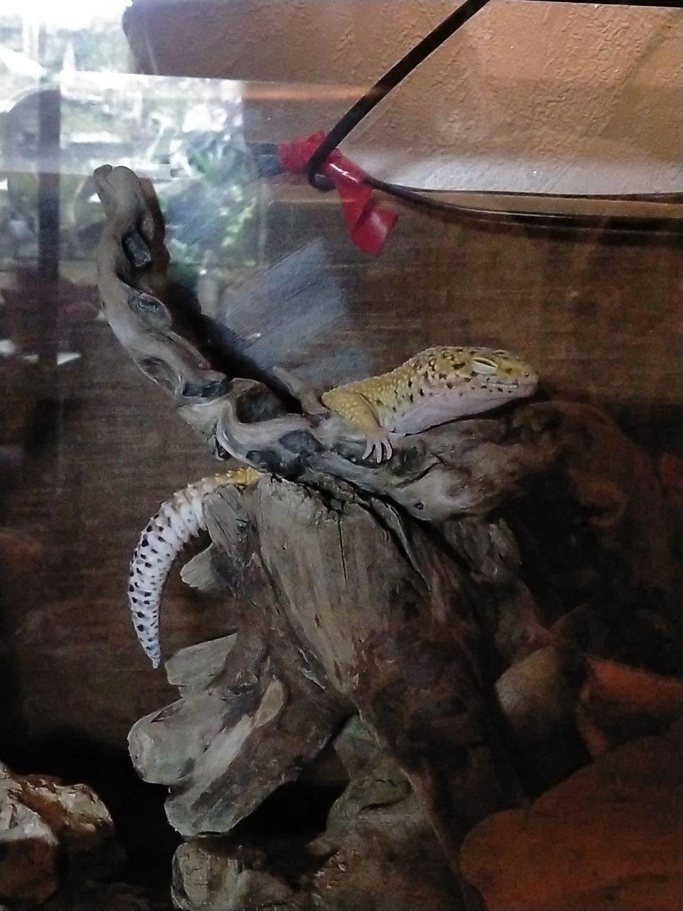 Зовут его Пятнышко, потому как, не трудно догадаться, он весь в пятнах. Эта красота в мире террариумистики зовётся пятнистым леопардовым гекконом, или эублефаром, широко известный тем, что выглядит он почти всегда улыбающимся. Эти гекконы очень любопытны и любят сидеть на руках и греться. Наиболее интересны эти гекконы тем, что у них довольно высокий интеллект, и у каждого — свой уникальный характер. Мне достался невротик