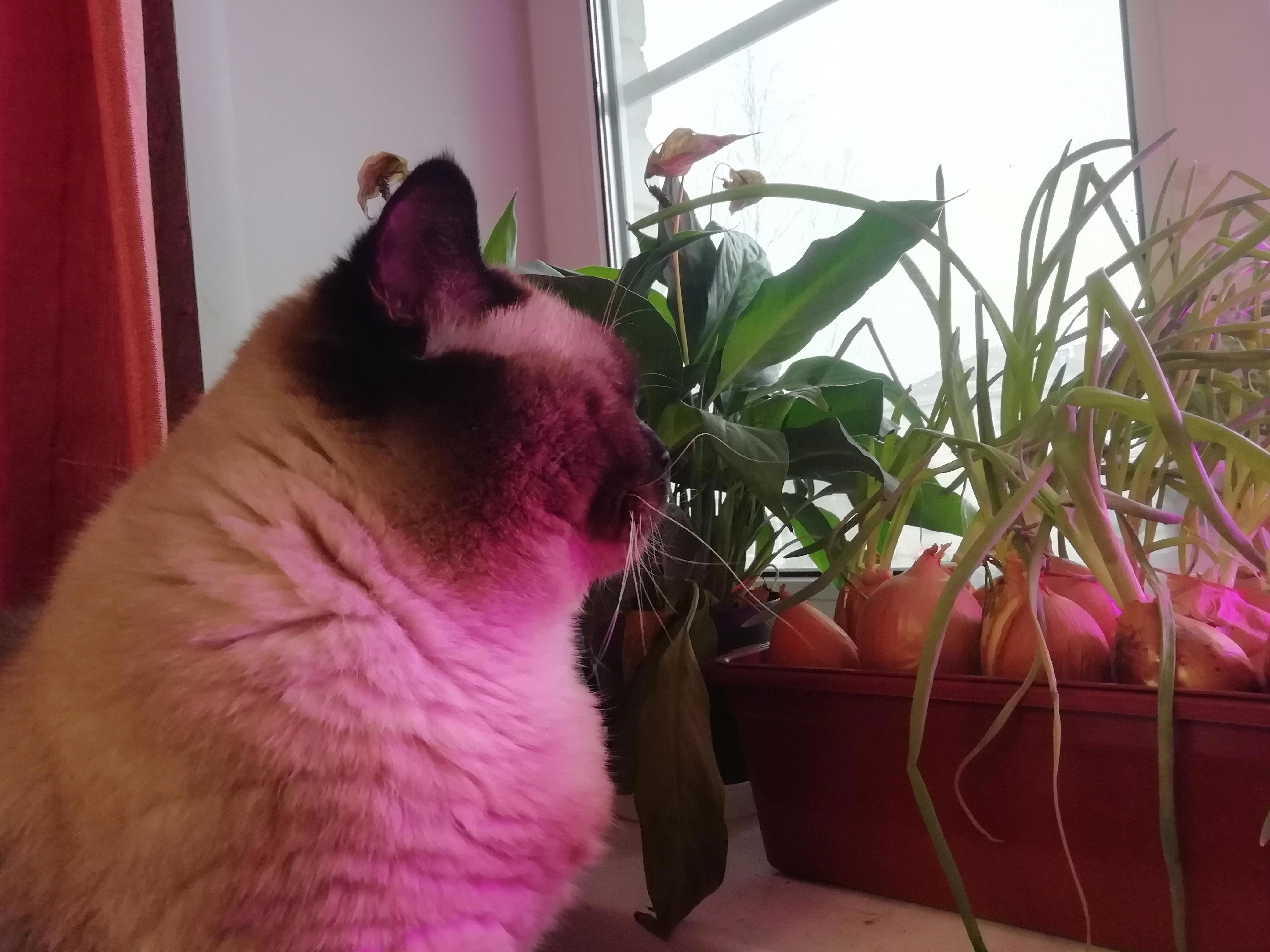 Ну а раз у нас пятница - вот вам котик. Котик наблюдает, как растёт лук: