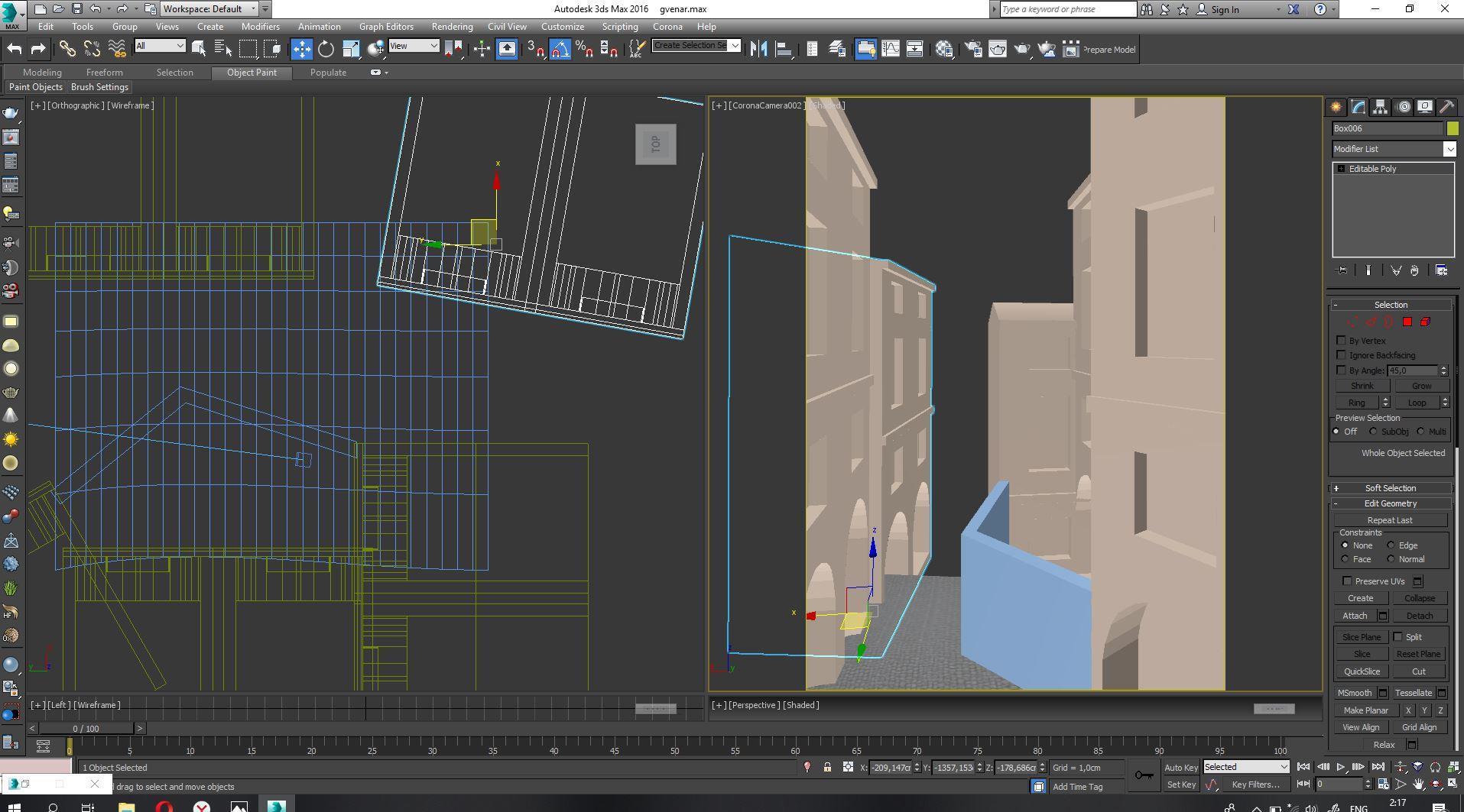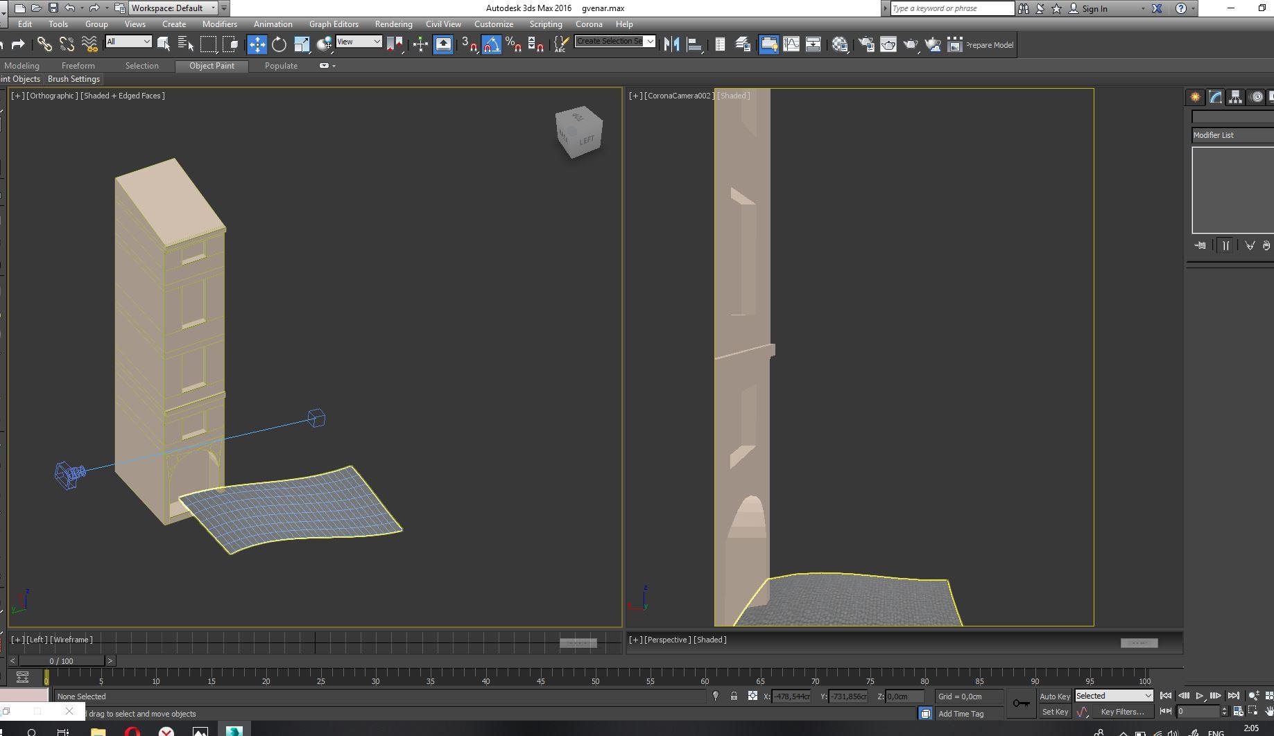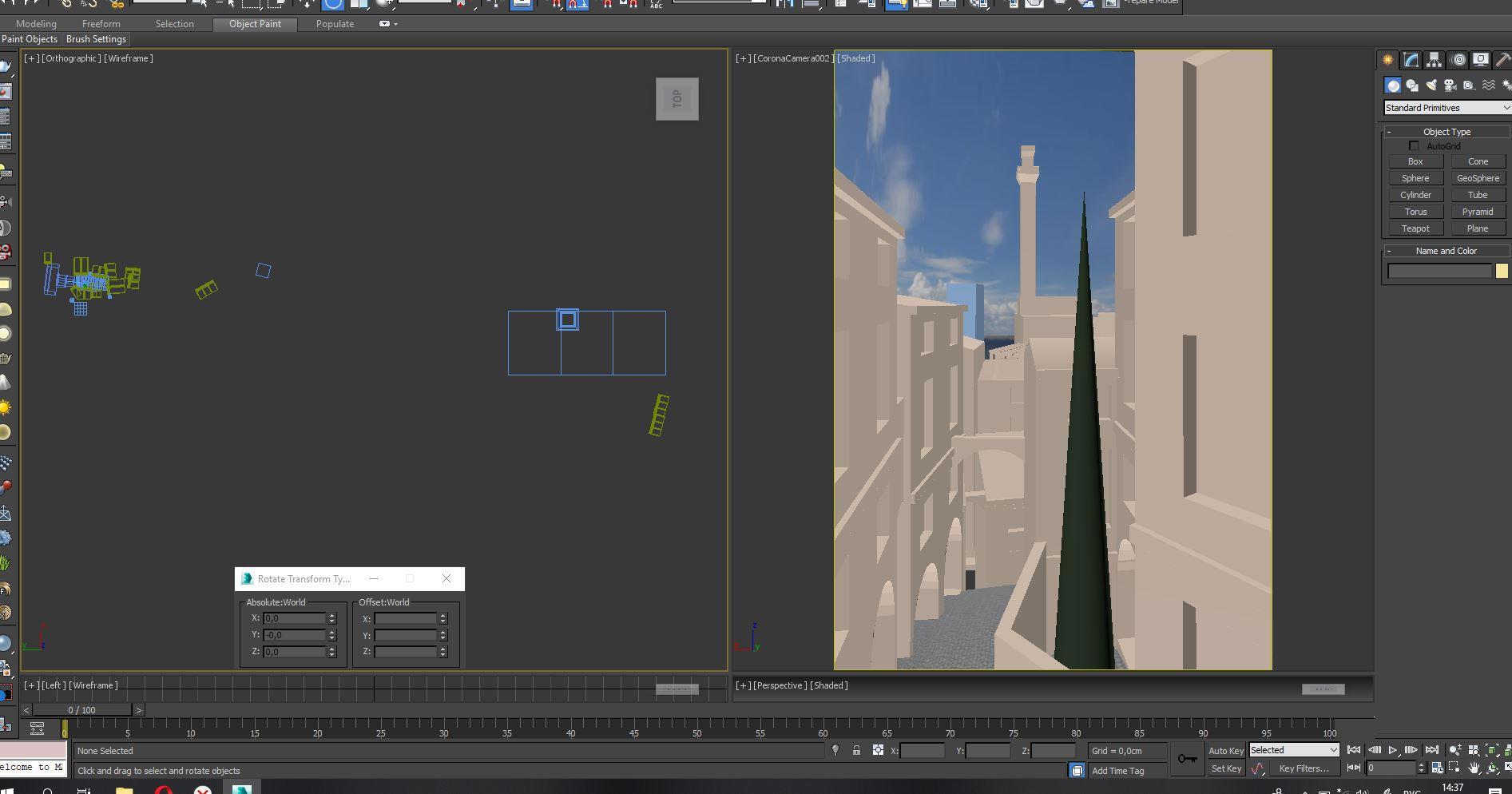 И сегодняшнее доковыривание. Буду пытаться понять сколько домиков делать в подробностях, а сколько "и так сойдет". Мы ж не извращенцы моделить то, что будет на горизонте, тем паче на маленькой обложечке. Зеленый конус это место для кипариса.