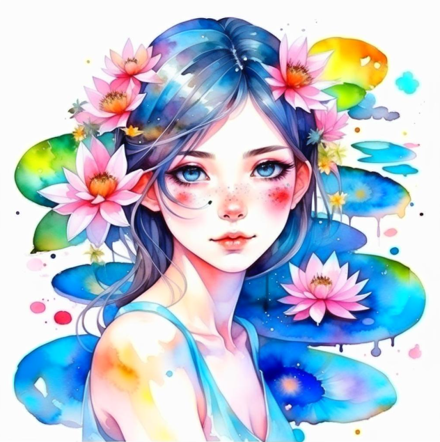 Внутри оказался портрет Василисы на холсте. Вроде бы акварельный, но очень хорошего качества и с необычными красками, как бы стекающими вниз. А сама Василиса предстала в образе почти русалки, с нимфеями в волосах, глянцевой кожей и длиннющими ресницами.