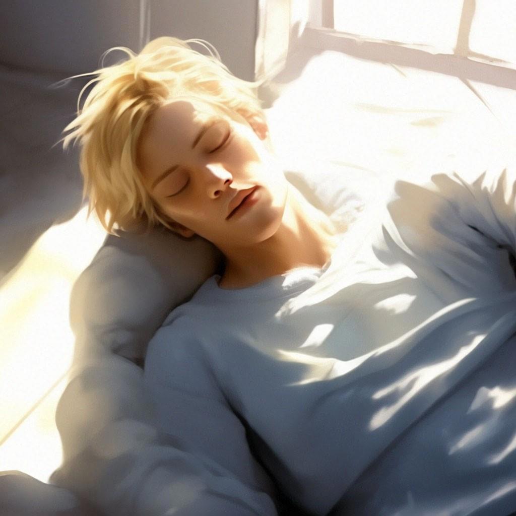 На кровати уставленной юношей, обнаженным по пояс, лежала спящая фигура. Юноша был молод и обладал красивым подтянутым телом, украшенным светлыми волосами.