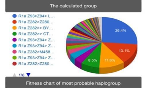 Для 6 образцов из 16 Y-ДНК удалось уточнить субклад R1a1a1b2-Z93.
