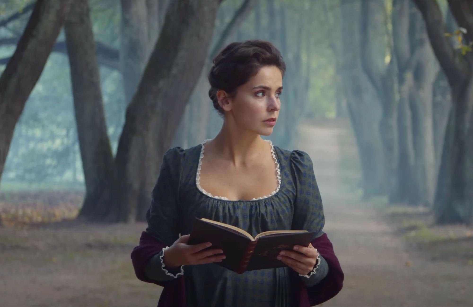 3. Отсылки. Я не смогла посчитать все. Я мало смотрю фильмов, и наверняка многое не увидела. Но совершенно точно и несомненно имелись визуальные отсылки на "Войну и мир", "Анну Каренину", "Гордость и предубеждение", "Джейн Эйр", "Призрака оперы" (в сне Татьяны), "Красавицу и чудовище", "Мастера и Маргариту". Особенно фантастически уместной стала одна из финальный отсылок на "Анну Каренину" - почти в самом конце, когда Онегин встречает замужнюю Татьяну на балу. В этот момент мы видим образ, удивительно похожий на образ Киры Найтли в знаменитой экранизации, и далее, во время чтения письма Онегина появятся кадры, напоминающие историю развития романа Анны и Вронского в этой экранизации. Мне самой всегда казалось, что "Анна Каренина" отчасти является фантазией о том, что было бы, если бы Татьяна ответила на чувства Онегина и изменила бы мужу, поэтому эта отсылка привела меня в полный восторг.