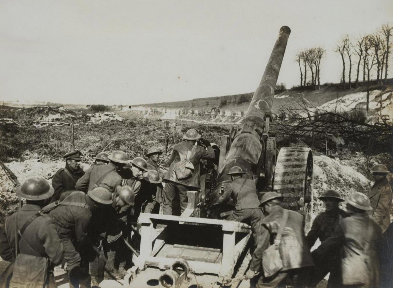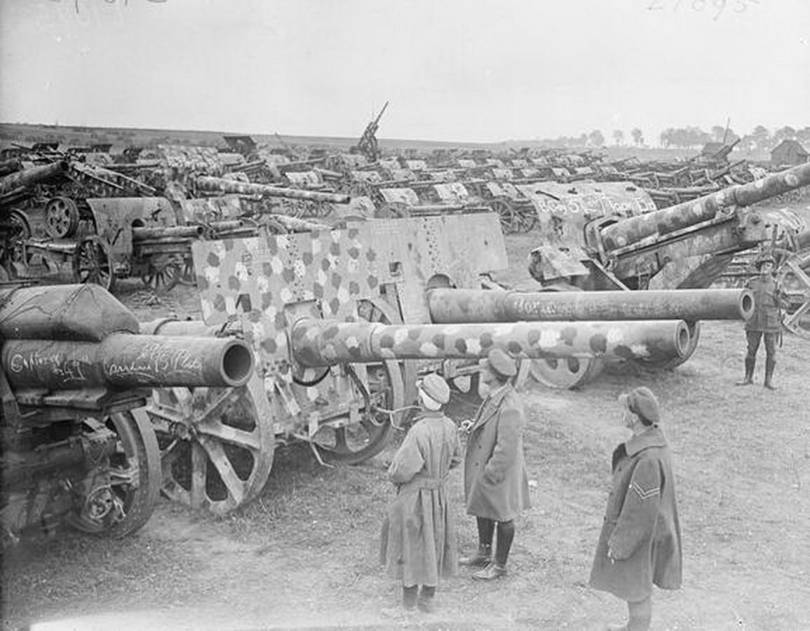 Немецкая артиллерия, захваченная в ходе "100 дневного наступления" (8 августа — 11 ноября 1918 года — широкомасштабное наступление войск Антанты против германской армии во время Первой мировой войны. Завершилось поражением германских войск и Компьенским перемирием, завершившим войну).