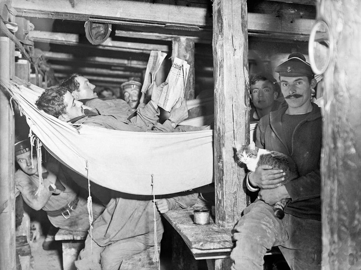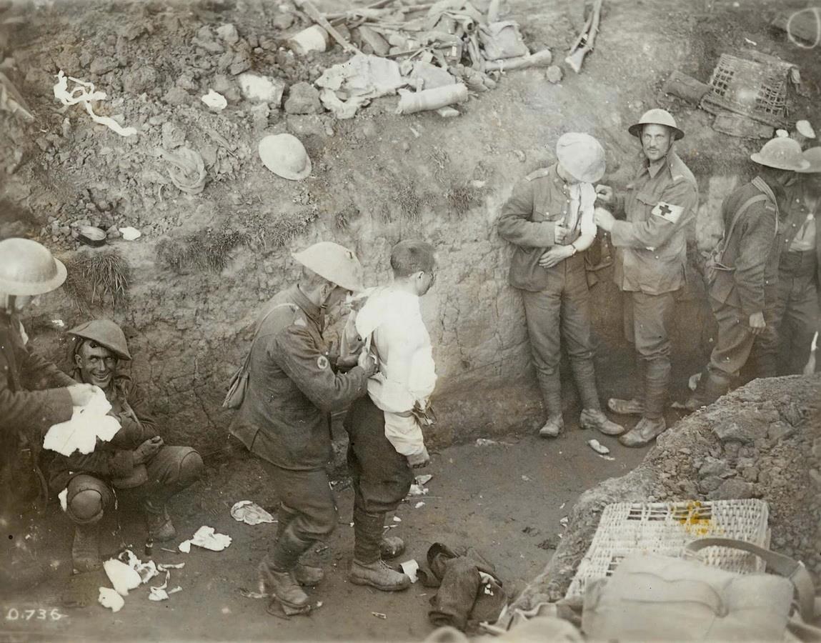 Перевязочный пункт во французской траншее. Сидит контуженый. 1916г