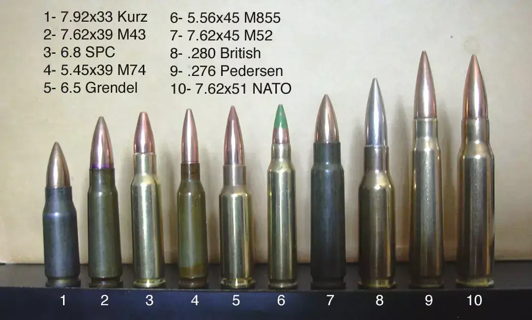 В роли главного злодея выступил полковник Рене Стадлер из департамента вооружений США. Хотя проведенные в 50-х сравнительные испытания британского патрона и оружия под него (EM-2 и FN FAL) с американскими серийными и опытными винтовками показали перспективность английских наработок, генералы армии США вели себя в лучших традициях Генри Форда. То есть соглашались на любой новый патрон – если он будет калибра .30 (7,62 мм) и по баллистике сравним с их прежним винтовочным патроном .30-06. До этого не дотягивали ни варианты .280-ого ни даже спешно спроектированный британо-бельгийско-канадский патрон 7mm Compromise.