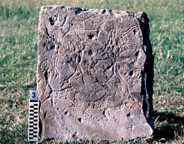 Второй вопрос – сами изображения. Здесь среди специалистов «разброд и шатания». Одни «знают всё» и уверенно объясняют рисунки, другие более осторожны и признаются, что не знают, ограничиваясь некоторыми версиями. Я, честно сказать, за вторых болею, так как «чужая душа – потёмки», как ни крути. Деталей верований и традиций этих людей мы сейчас знать не можем, несмотря на то что они были нашими предками. Просто слишком много времени прошло. Тем интереснее посмотреть на рисунки внимательно и попробовать включить фантазию. Вот, например, фото одной плиты (фрагмент):