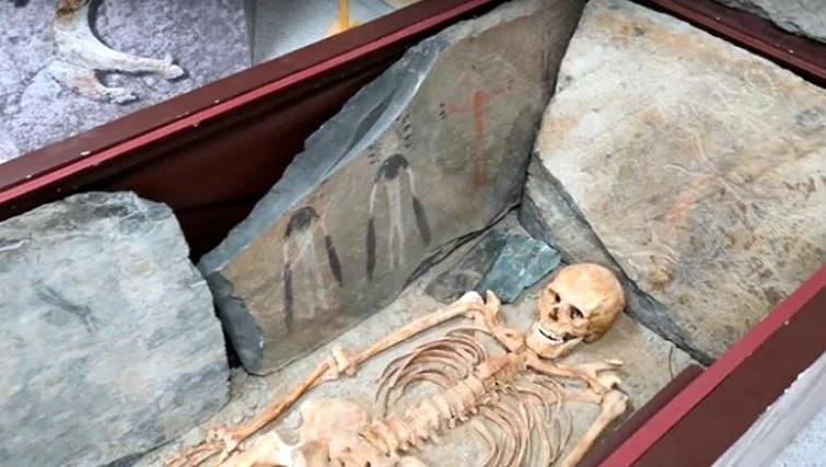 А ещё камни, которыми было обложено тело, оказались расписанными немного странными изображениями. Вот так выглядело захоронение: