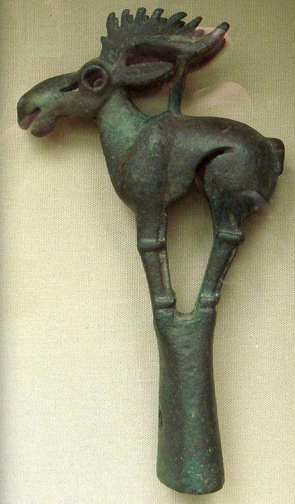 А вот ещё одно изображение лося, которое нашли на Алтае в раскопе Аржаан-1. На этот раз в металле: