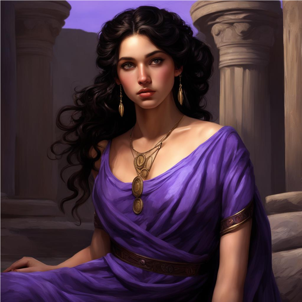 Автор: Павел МарковЧерные, как смоль, волосы. Большие карие глаза. Прямой носик и пухлые губы. Роскошный пурпурный хитон качался при ходьбе, подобно морским волнам, при каждом шаге оголяя изящные бедра.