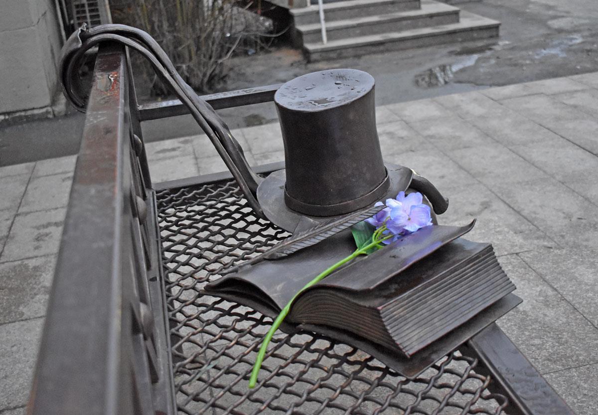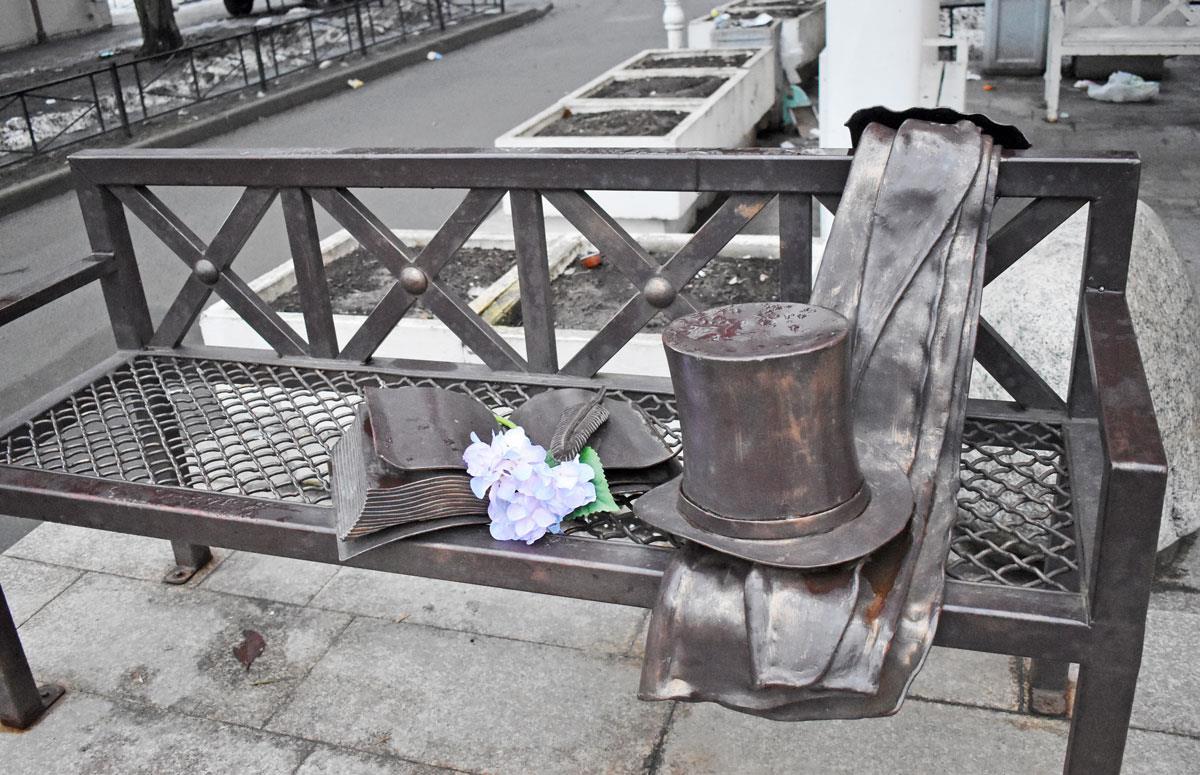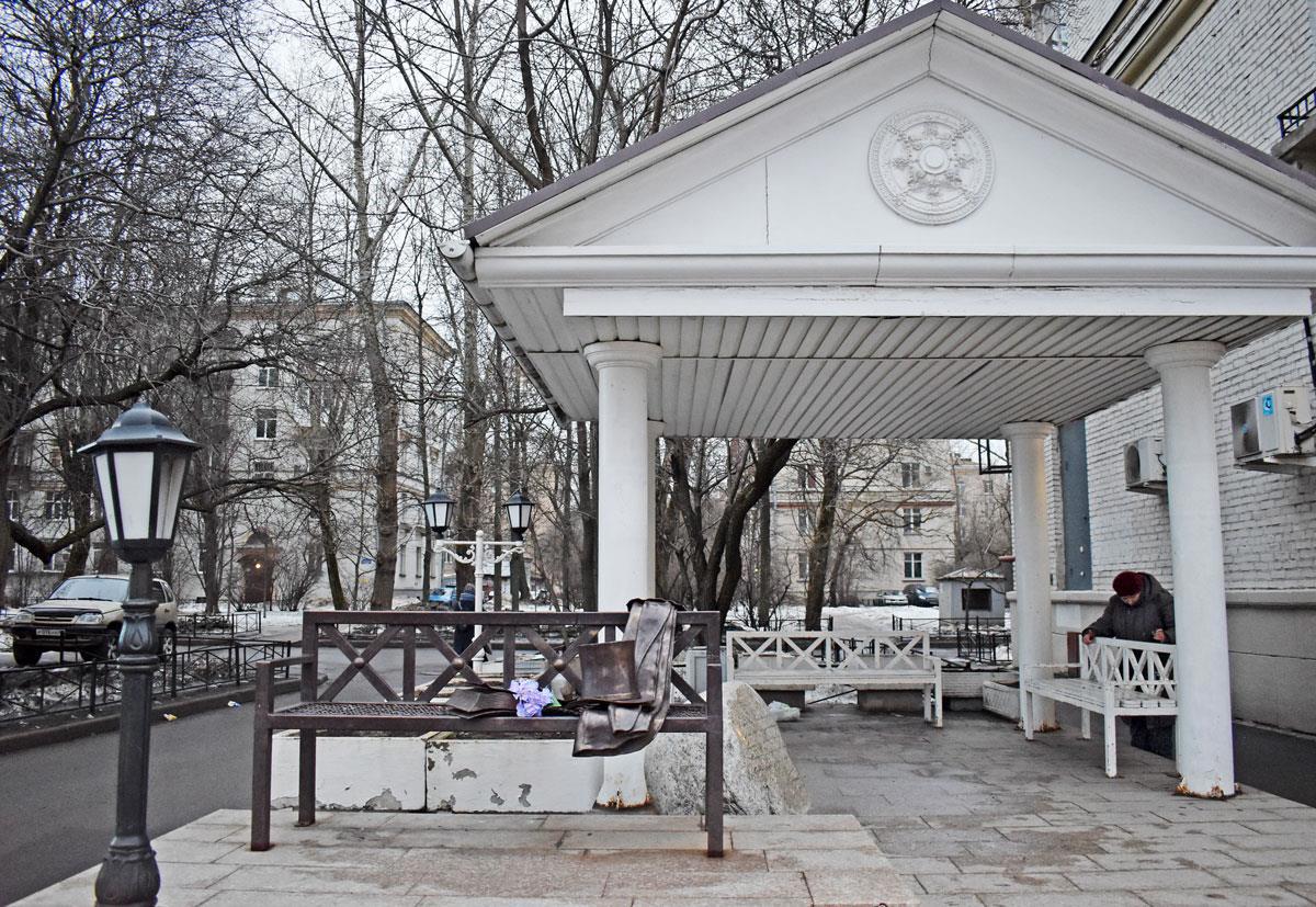На самом памятнике Пушкина нет. Есть скамейка, на которой он сидел, лежат оставленные цилиндр, трость, книга. Он куда-то отошёл - может быть, посмотреть, как отстроили за два века этот район? Сам этот район такой - ощущение, что Пушкин где-то рядом - постоянно присутствует. Тут место дуэли, с мощной памятной стеллой сталинского периода. Тут усадьба Ланских и шоссе, которое в честь них названо. Многое напоминает о Пушкине. Но сам Пушкин здесь не гуляет. Ушёл.