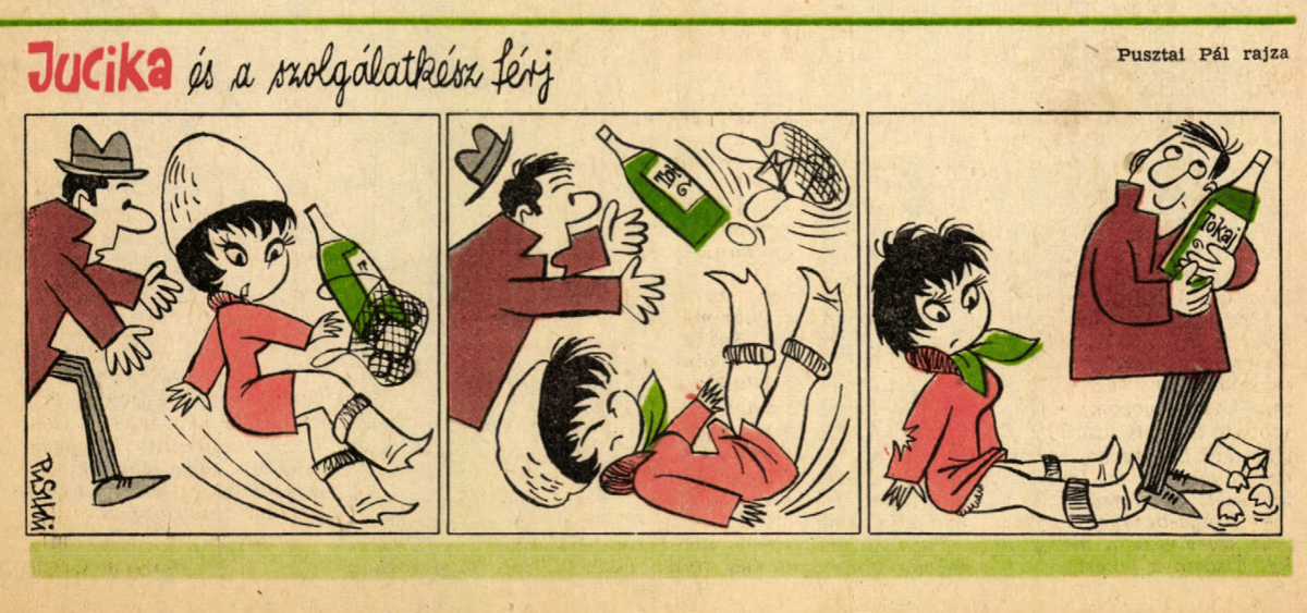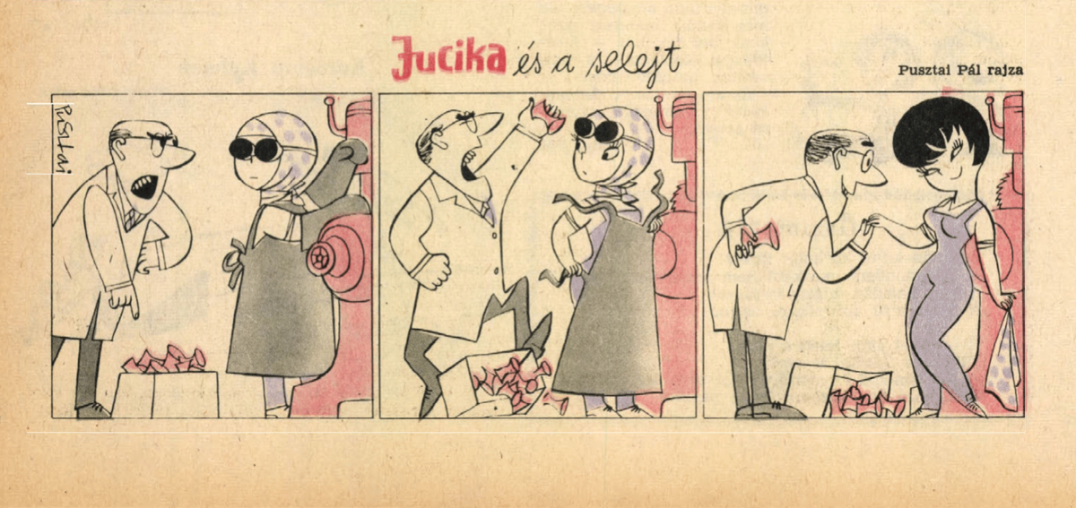 В Венгрии юмористический журнал с несколько необычным названием "Пастух гусей Мати", где публиковались комиксы про Юцику, расходился мгновенно, тиражом в 600 000 экземпляров. Зато у нас в СССР Юцика была запрещена, поскольку комиксы лишь самую малость фривольны. Девушка знает, что привлекательна и во всю этим пользуется. Так мы не увидели, как Юцика смогла поприветствовать Юрия Гагарина.